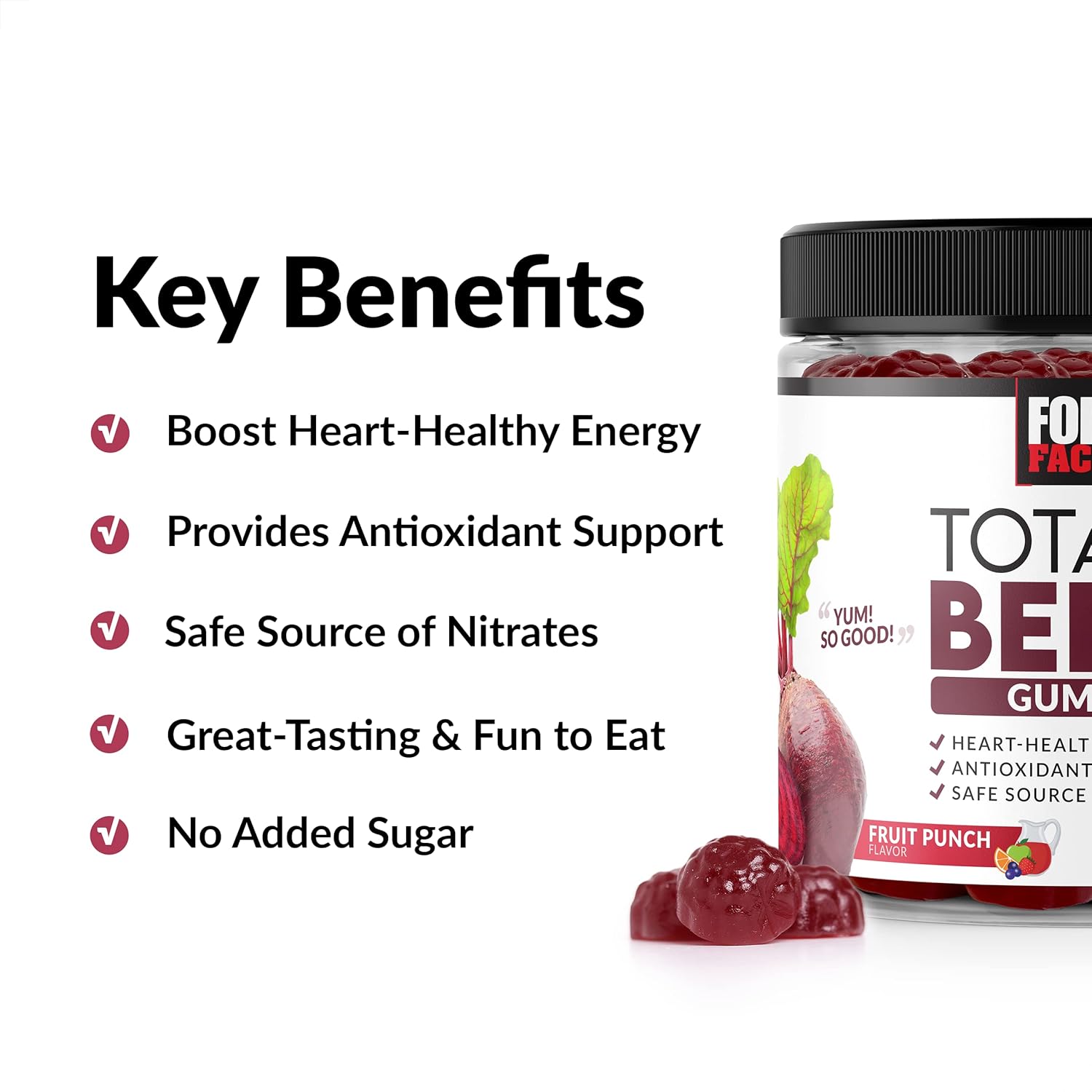 Force Factor Total Beets Gummies Beet Supplement With Beet Powder,Superfood With Nitrates, Great-Tasting Beet Chewables For Heart-Healthy Energy, Antioxidant Support, And More, 60 Gummies