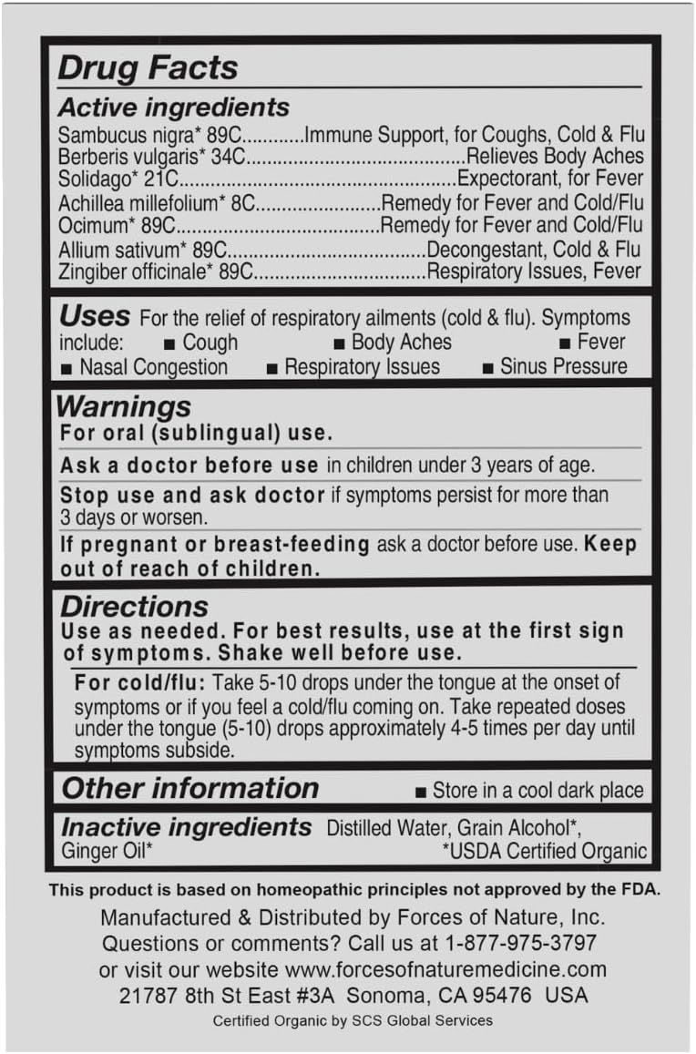 About this item NATURAL COLD MEDICINE: Be ready for cold season with Cold & Cough Maximum Strength, a fast-acting, natural remedy designed to support your immune system while providing relief from congestion, fever, body aches, and overall discomfort. This non-drowsy formula offers a safe and effective solution for both adults and kids. HOMEOPATHIC & NATURAL FORMULA: Our cold and cough remedy blends homeopathic ingredients to provide effective relief without harsh chemicals. This unique formula includes Elderberry for sinus support, Garlic and Goldenrod to strengthen immunity, White Yarrow to help with fevers, and Ginger to promote overall wellness. SUPPORTS IMMUNE FUNCTION: Our homeopathic cold medicine is formulated with an advanced nano delivery system to help strengthen the body's natural defenses and support overall immune health. HOW TO USE: This is a great-tasting, non-drowsy cold and flu medicine. To strengthen immune health, add a few drops to water and sip throughout the day. To ease symptoms, place 5-10 drops under the tongue for fast support. WHY WE'RE DIFFERENT: Forces of Nature strives to provide safe, organic products for families in search of healthier solutions to their well-being. Our Cold & Cough Maximum Strength is proudly made in the USA with globally sourced ingredients. We manufacture in an FDA-registered facility, meeting the highest standards of quality and safety. Certified USDA Organic, Non GMO Project Verified, and Leaping Bunny Certified, this product is both highly effective and ethically produced. See more product details,NATURAL COLD MEDICINE: Be ready for cold season with Cold & Cough Maximum Strength, a fast-acting, natural remedy designed to support your immune system while providing relief from congestion, fever, body aches, and overall discomfort. This non-drowsy formula offers a safe and effective solution for both adults and kids,HOMEOPATHIC & NATURAL FORMULA: Our cold and cough remedy blends homeopathic ingredients to provide effective relief without harsh chemicals. This unique formula includes Elderberry for sinus support, Garlic and Goldenrod to strengthen immunity, White Yarrow to help with fevers, and Ginger to promote overall wellness,SUPPORTS IMMUNE FUNCTION: Our homeopathic cold medicine is formulated with an advanced nano delivery system to help strengthen the body's natural defenses and support overall immune health,HOW TO USE: This is a great-tasting, non-drowsy cold and flu medicine. To strengthen immune health, add a few drops to water and sip throughout the day. To ease symptoms, place 5-10 drops under the tongue for fast support,WHY WE'RE DIFFERENT: Forces of Nature strives to provide safe, organic products for families in search of healthier solutions to their well-being. Our Cold & Cough Maximum Strength is proudly made in the USA with globally sourced ingredients. We manufacture in an FDA-registered facility, meeting the highest standards of quality and safety. Certified USDA Organic, Non GMO Project Verified, and Leaping Bunny Certified, this product is both highly effective and ethically produced