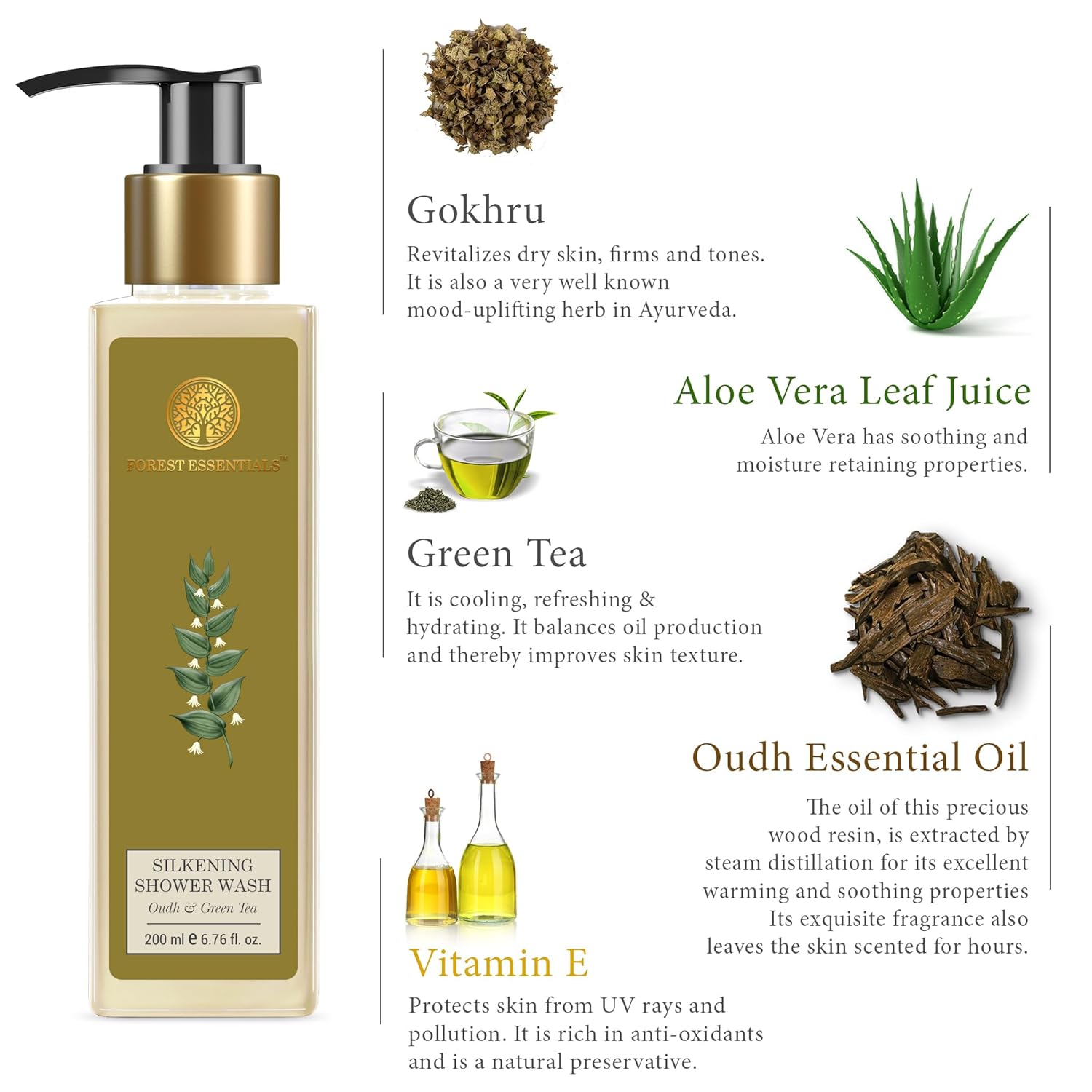 Forest Essentials Oudh And Green Tea Silkening Shower Wash, 200Ml