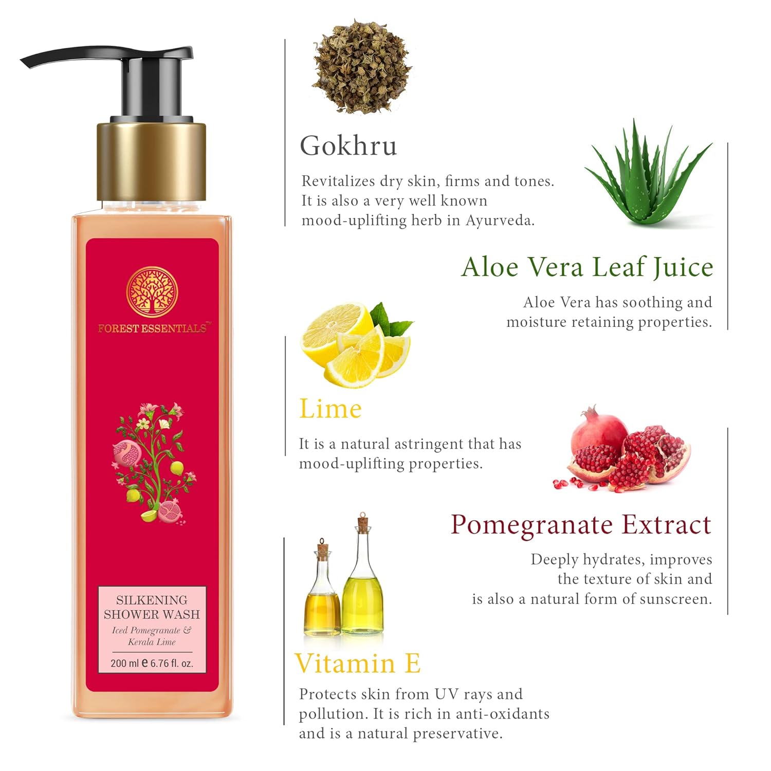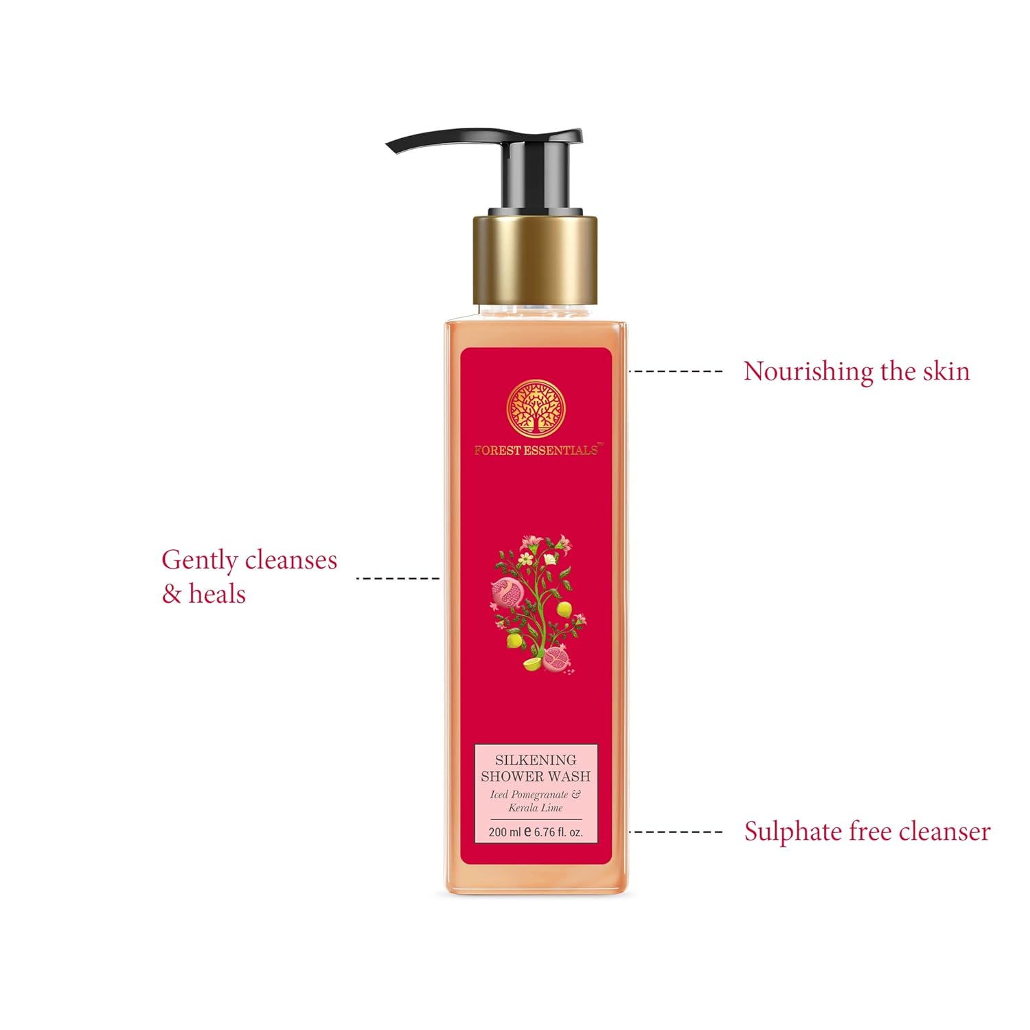 Forest Essentials Silkening Shower Wash, Iced Pomegranate With Fresh Kerala Lime, 200Ml