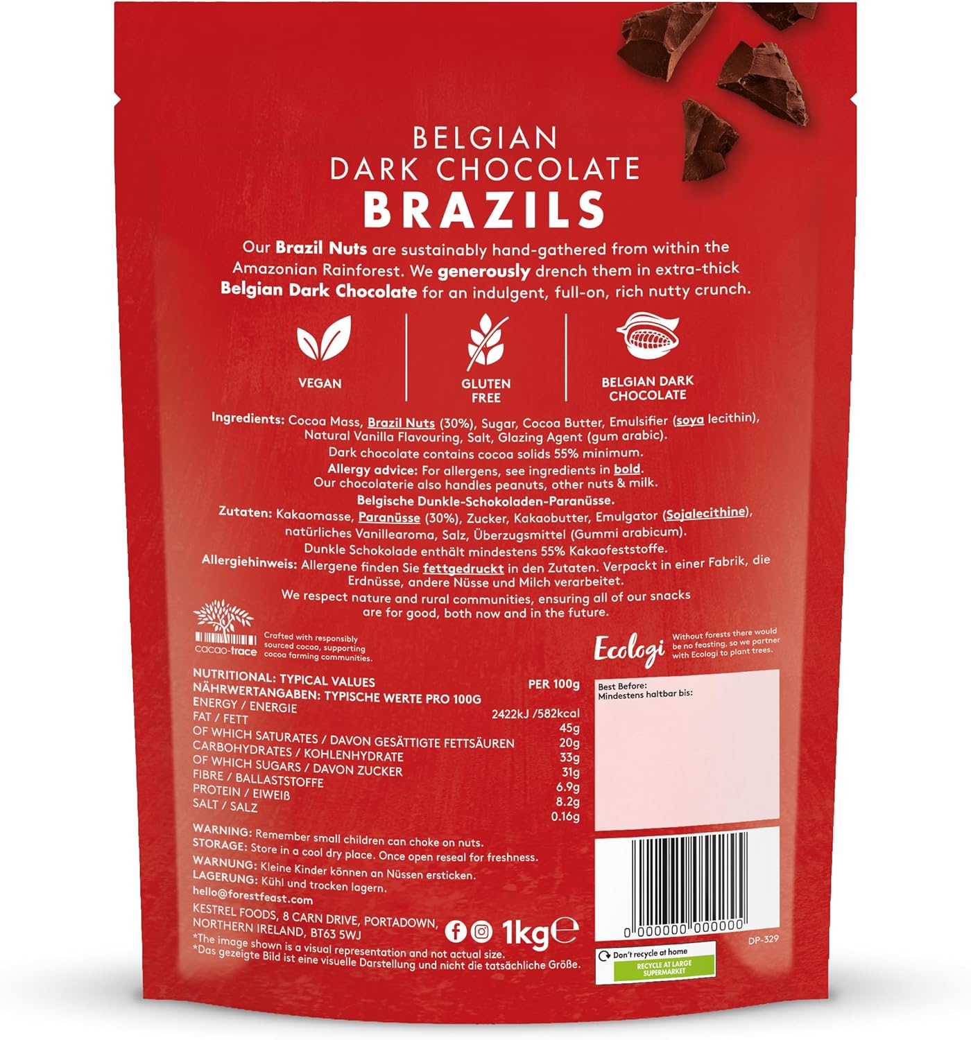Forest Feast Belgian Milk Chocolate Brazil Nuts 700G | Natural Gluten Free Snack Coated In Milk Chocolate, High Protein, Chocolate Covered Brazil Nuts, Whole Brazil Nuts