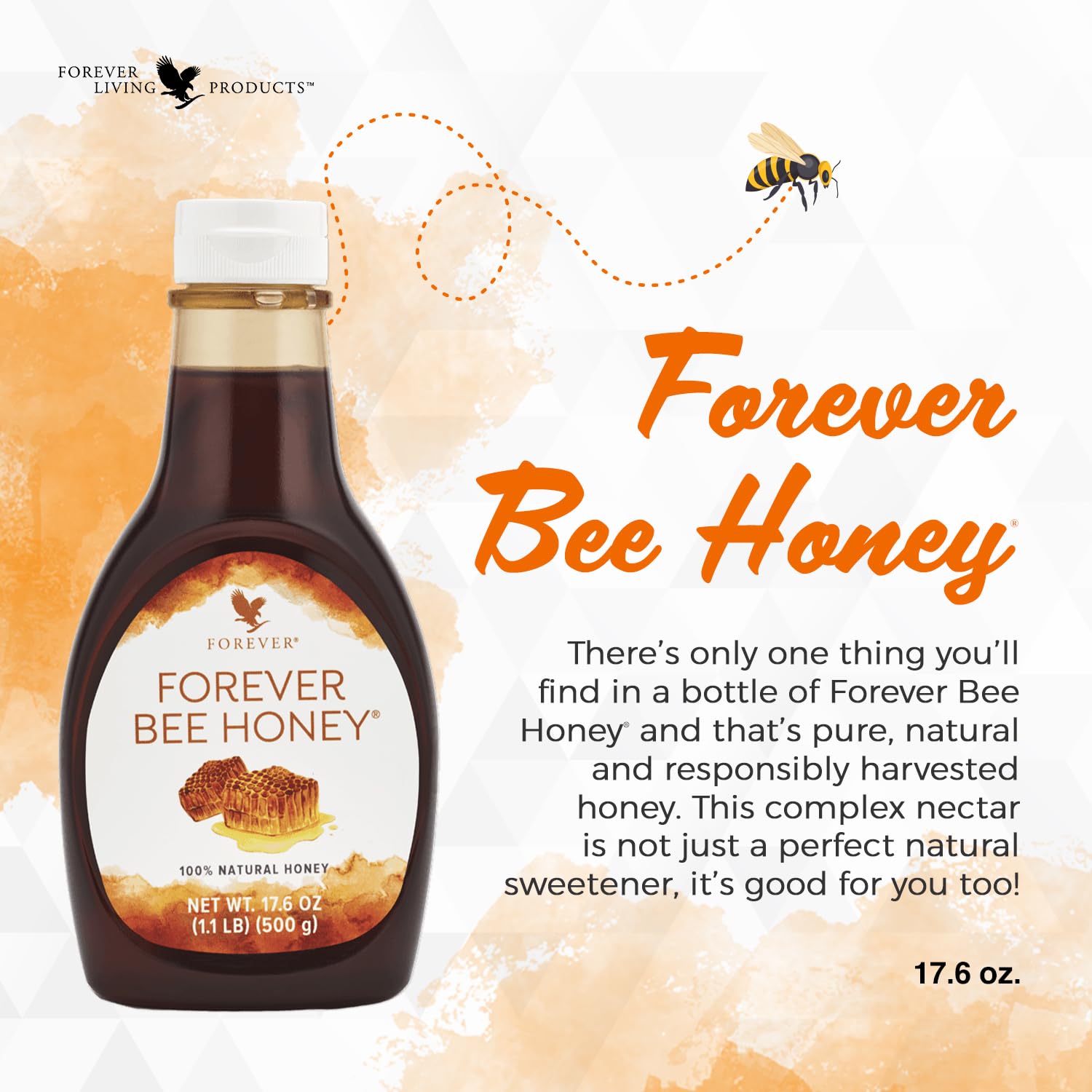 About this item Pure and Premium: Contains only pure, responsibly harvested mountain honey. Our honey is carefully sourced from pristine mountain regions where bees collect nectar from wildflowers, ensuring no additives. Rich and Refined Flavor: Experience the rich, smooth, and complex flavors of our honey, which includes notes of sweet spice, lavender, rosemary, and orange blossoms. Harvesting time is similar to fine wine production. Premium Energy Booster: Packed with Ideal sugars and essential nutrients, Forever Bee Honey provides a healthy and sustained energy boost. Ideal for athletes, busy professionals, or anyone needing a quick pick-me-up. Diet-Friendly: Our honey is vegetarian-friendly and gluten-free, for those with specific dietary restrictions. It fits seamlessly into various diets, providing a delicious and nutritious sweetening option. Versatile Sweetener: For sweetening your cup of Forever Aloe Blossom Herbal Tea, hot or iced, and an excellent addition to a variety of dishes. Use it in baking, cooking, or as a topping for yogurt and oatmeal. Forever’s products have not been evaluated by the Food and Drug Administration and are not intended to diagnose, treat, cure, or prevent any disease. Individual results may vary. See more product details,Pure and Premium: Contains only pure, responsibly harvested mountain honey. Our honey is carefully sourced from pristine mountain regions where bees collect nectar from wildflowers, ensuring no additives,Rich and Refined Flavor: Experience the rich, smooth, and complex flavors of our honey, which includes notes of sweet spice, lavender, rosemary, and orange blossoms. Harvesting time is similar to fine wine production,Premium Energy Booster: Packed with Ideal sugars and essential nutrients, Forever Bee Honey provides a healthy and sustained energy boost. Ideal for athletes, busy professionals, or anyone needing a quick pick-me-up,Diet-Friendly: Our honey is vegetarian-friendly and gluten-free, for those with specific dietary restrictions. It fits seamlessly into various diets, providing a delicious and nutritious sweetening option,Versatile Sweetener: For sweetening your cup of Forever Aloe Blossom Herbal Tea, hot or iced, and an excellent addition to a variety of dishes. Use it in baking, cooking, or as a topping for yogurt and oatmeal,Forever’s products have not been evaluated by the Food and Drug Administration and are not intended to diagnose, treat, cure, or prevent any disease. Individual results may vary
