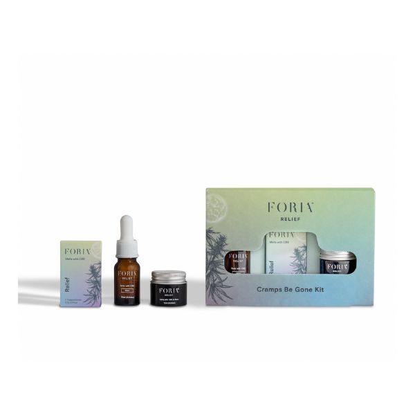 Product Information:This kit contains everything you need to relieve period discomfort, naturally: three mini-sizes of Relief Salve with CBD & Kava, Relief Melts with CBD, Relief Tonic with CBD & Mint,Features:Foria's relief formulas support every part of your menstrual cycle—from cramps to lower back discomfort to PMS moodiness. Used together or separately, these products will help ease period discomfort in the mind and body, both inside and out. Included in the kit are three products. Firstly, Relief Salve with CBD & Kava (10ml). This soothing salve unites powerful plant- remedies long revered for topical relief: kava kava, ginger, eucalyptus, and more, plus full-spectrum extract from organically-grown hemp. Next up is Foria Relief Melts with CBD (contains 2 Melts). Bye-bye cramps, hello comfort. Foria all-natural suppositories were designed to melt tension and soothe from within, delivering 100mg of broad-spectrum CBD right where you need it most. Relief Tonic with CBD & Mint (10ml): Support period relief and daily wellbeing with this naturally mint-flavored tonic. Made with the highest quality CBD oil from USDA organic-certified regeneratively-grown hemp,Warning or Restrictions:Allergens: avoid use if you (or your partner) are allergic to any ingredients. Contains coconut oil, which is considered a "tree nut." Keep out of reach of children & pets. If you are pregnant, breastfeeding, or taking pharmaceutical drugs, please consult your physician before use. NOT RECOMMENDED FOR USE WITH LATEX CONDOMS. Because Relief Melts are oil-based and can degrade latex and poly-isoprene, we recommend choosing oil-safe barriers like polyurethane or nitrile condoms for protection from STIs and pregnancy (or lambskin for prevention of pregnancy but not STIs),Product Specification:Relief Salve: Organic MCT Coconut Oil, Botanical Infusions (Organically-Grown Kava Root, Organic St. John's Wort, Organic Ginger), Organic Beeswax, Organic Castor Oil, Full-Spectrum Extract from USDA Organic-Certified, Regeneratively-Grown Hemp (0.3% THC or less), Organic Essential Oils (Lavender, Peppermint, Eucalyptus, Ginger). Relief Melts: Organic-certified fair trade cocoa butter100mg Broad-spectrum extract from USDA organic-certified, regeneratively-grown USA hemp (CBD). Relief Tonic: Organic MCT Coconut oil, Broad-spectrum extract from USDA organic-certified, regeneratively-grown hemp (CBD),Recyclable:Foria use only low-impact, eco-conscious, recyclable packaging with minimal plastic,Tips and Advice:Relief Salve: Rub a generous amount on your pelvis during your menstrual cycle or anywhere muscles and joints are tense, fatigued, painful or sore. The cannabis & botanicals encourage muscle release and nourishing blood flow. For the best freshness and texture, keep your jar closed and cool when not in use. If separation occurs, stir until blended, then refrigerate. Relief Melts: Keep refrigerated to ensure firmness. To open, separate one shell from the rest, then peel apart from the flat plastic tabs. Insert vaginally, rectally or both. Use at the onset of discomfort. If used for menstrual cramps, you may also experience benefits when used before your period starts. Experiment to learn what works best for your body. When possible, lie down with hips elevated for 10-20 minutes to support absorption. Relief Tonic: This product is designed for oral ingestion. Start with half a dropper of tonic — about 17mg CBD – and swish the oil around your tongue, cheeks and gums before swallowing. As with any CBD product, see how you feel after about 15 minutes to an hour. (A full stomach may delay the effects, especially if you don't swish before swallowing.) If you desire stronger relief or support, gradually raise your dosage over a day or so while observing your body's response. Every body is unique: some people benefit from just a few drops, while others might increase to as much as 2-3 full droppers over a few days before their endocannabinoid system (ECS) begins responding