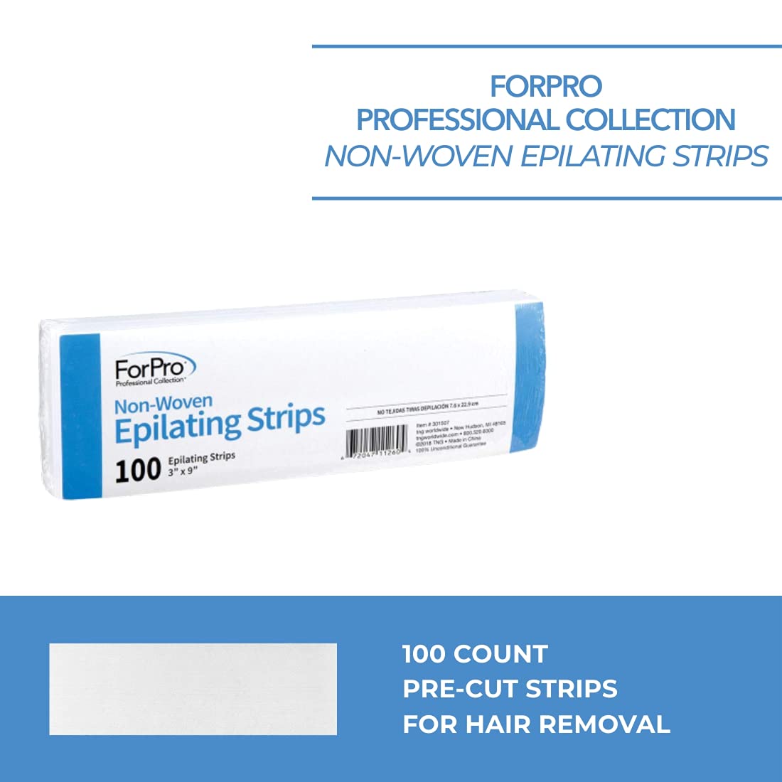 About this item Epilating Strips: ForPro non-woven epilating strips are the professional choice for all depilatory services. They feature an extra-soft calendering process. Waxing Strips: The epilating strips are designed for all wax removal applications. These lint-free & tear-resistant pre-cut waxing strips are made from fine grade weaves that offer maximum absorption & precise hair removal. Non-Woven Strips: The medium thickness of these waxing strips are perfect for removing hair from legs, arms, back, and other large areas of the body. Hair Removal Waxing Strips: The pre-cut epilating strips are durable and will not separate or tear during use. Size & Quantity: The white non-woven epilating strips measure 3" W x 9" L each and come in a pack of 100 hair removal waxing strips.  See more product details,Epilating Strips: ForPro non-woven epilating strips are the professional choice for all depilatory services. They feature an extra-soft calendering process,Waxing Strips: The epilating strips are designed for all wax removal applications. These lint-free & tear-resistant pre-cut waxing strips are made from fine grade weaves that offer maximum absorption & precise hair removal,Non-Woven Strips: The medium thickness of these waxing strips are perfect for removing hair from legs, arms, back, and other large areas of the body,Hair Removal Waxing Strips: The pre-cut epilating strips are durable and will not separate or tear during use,Size & Quantity: The white non-woven epilating strips measure 3" W x 9" L each and come in a pack of 100 hair removal waxing strips