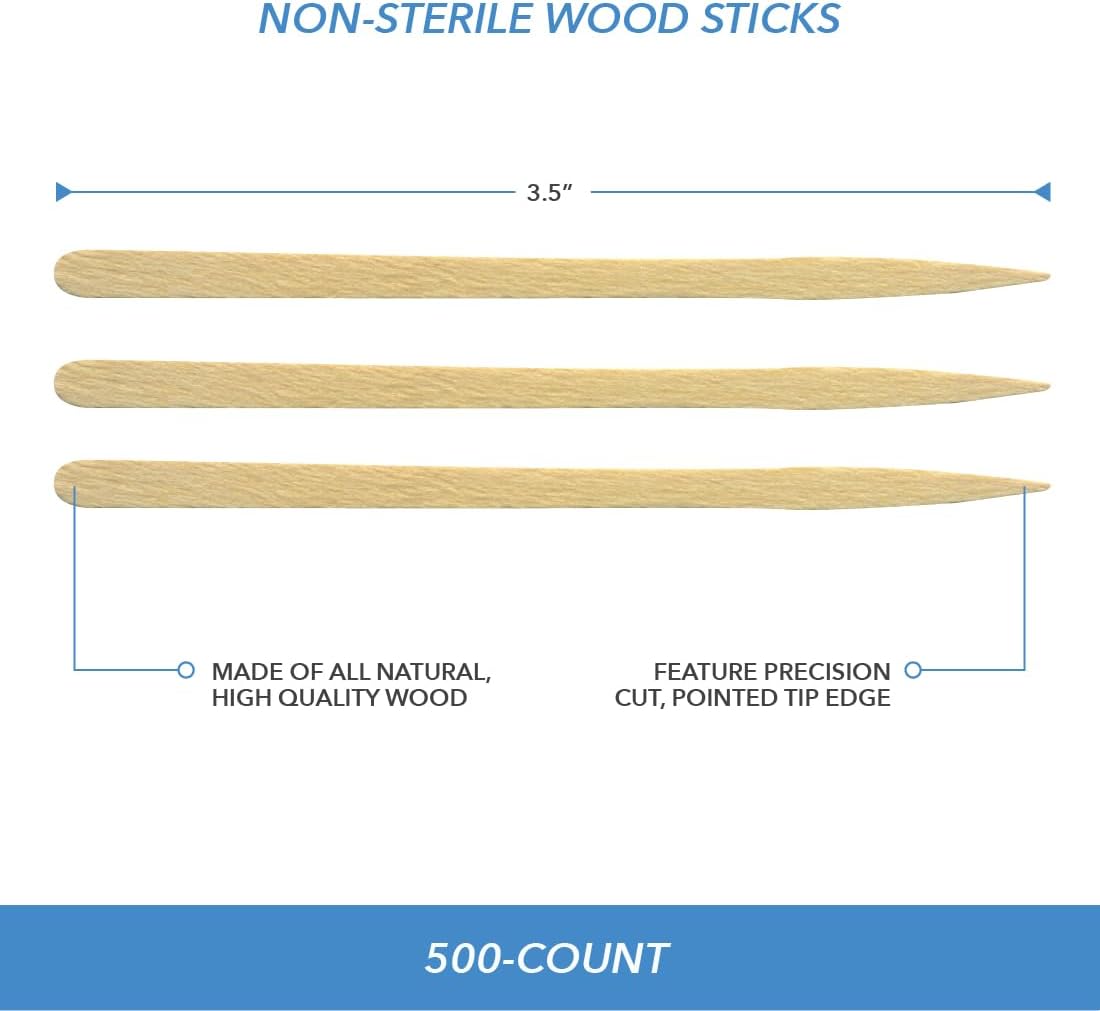 Size and Quantity: Delicate hair removal sticks measure 3.5” L x .25” W each and come in a 500-count pack
