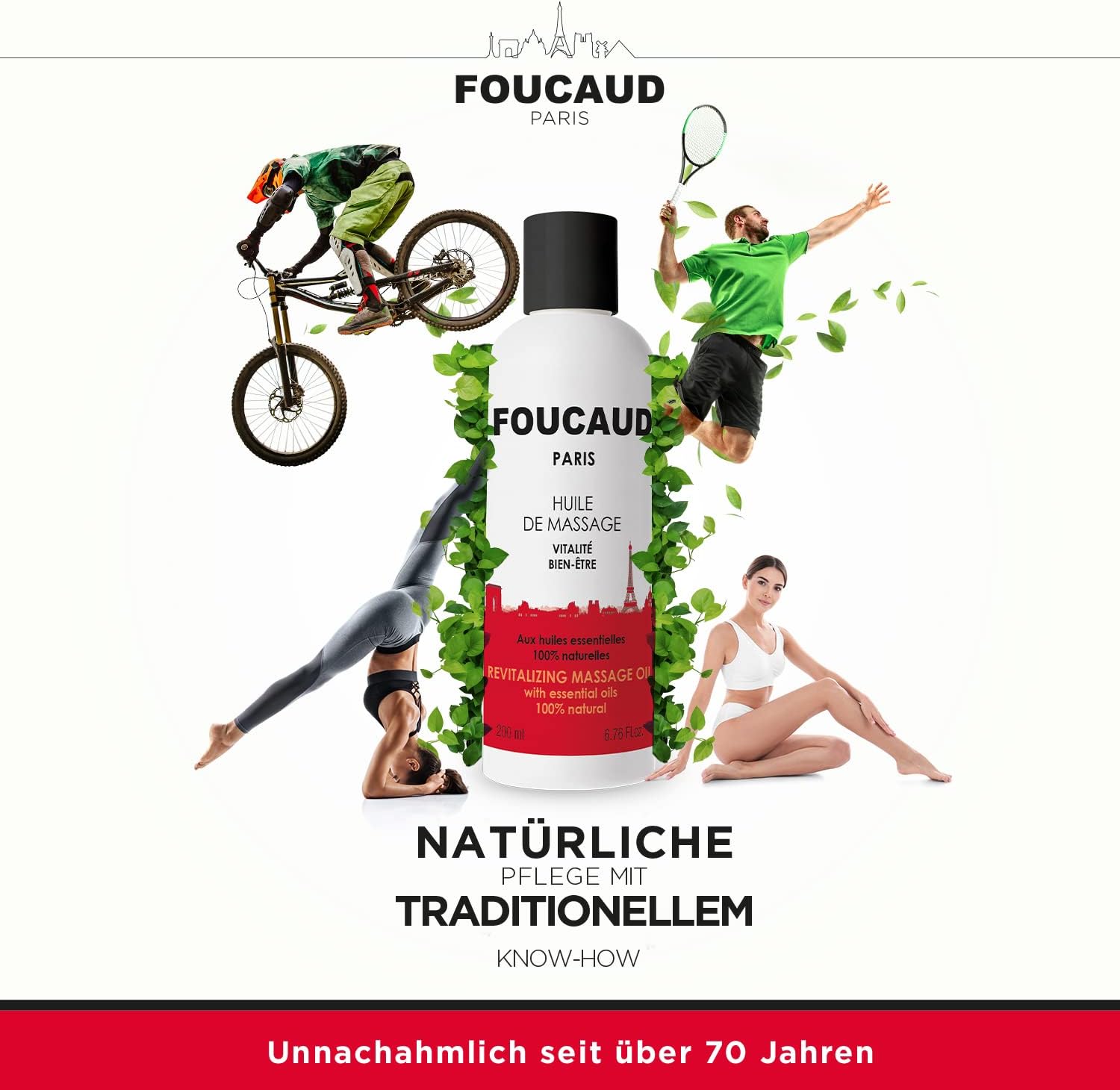 About this item FOUCAUD MASSAGE OIL is a revitalising oil containing orange, thyme, lavender, lemon, and rosemary essential oils; as well as essential rose wax. It provides both a relaxing and revitalising sensation. PERFECT FOR POST-SPORTS RECOVERY: relieve and relax your muscles after exercise thanks to the benefits of massage. Also suitable for a relaxing full-body massage. TARGETED SKIN CONTACT AND CONTROLLED MOVEMENTS: ideal for massage therapists French Brand › See more product details,FOUCAUD MASSAGE OIL is a revitalising oil containing orange, thyme, lavender, lemon, and rosemary essential oils; as well as essential rose wax. It provides both a relaxing and revitalising sensation,PERFECT FOR POST-SPORTS RECOVERY: relieve and relax your muscles after exercise thanks to the benefits of massage. Also suitable for a relaxing full-body massage,TARGETED SKIN CONTACT AND CONTROLLED MOVEMENTS: ideal for massage therapists,French Brand