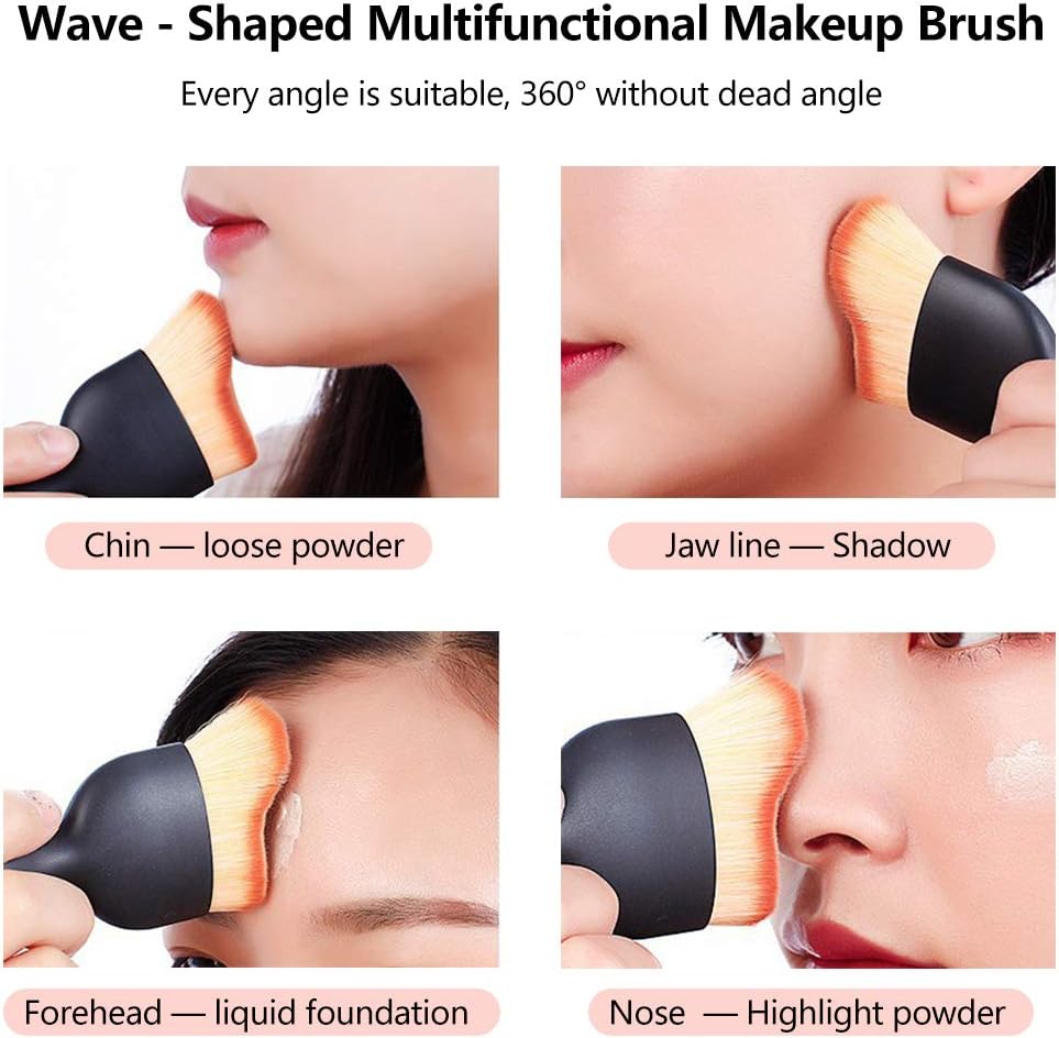 About this item ?MAKES MAKEUP MORE EASY-- Makeup foundation brush with wave-shaped head, fits the sides of the nose and the chin perfectly, arc handle that has nice touch feeling, makes makeup grace full and more docile without any brush mark. ?NO-SHEDDING & CRUELTY-FREE SYNTHETIC HAIR-- Soft & dense synthetic fibers foundation makeup brushes to provide a high definition with liquid, powders or cream foundation without any absorption of product and no shedding. ?PREMIUM SYNTHETIC BRISTLES--The synthetic bristles are incredibly smooth, soft and dense, well-defined, strong in gripping powder, uniform in stickiness, good in elasticity, not easy to break, kabuki brush providing uniform and precise application, natural fit, helping to create perfect makeup. ? PORTABLE-- Exquisite foundation brush is portable and lightweight, perfect for you to carry when you travel or go to work. ?PEEFECT GIFT-- Makeup brushes make a perfect gift for those who love makeup or even just learning and experimenting with makeup. If you are not completely satisfied with your makeup brush, please feel free to contact with us. › See more product details,?MAKES MAKEUP MORE EASY-- Makeup foundation brush with wave-shaped head, fits the sides of the nose and the chin perfectly, arc handle that has nice touch feeling, makes makeup grace full and more docile without any brush mark,?NO-SHEDDING & CRUELTY-FREE SYNTHETIC HAIR-- Soft & dense synthetic fibers foundation makeup brushes to provide a high definition with liquid, powders or cream foundation without any absorption of product and no shedding,?PREMIUM SYNTHETIC BRISTLES--The synthetic bristles are incredibly smooth, soft and dense, well-defined, strong in gripping powder, uniform in stickiness, good in elasticity, not easy to break, kabuki brush providing uniform and precise application, natural fit, helping to create perfect makeup,? PORTABLE-- Exquisite foundation brush is portable and lightweight, perfect for you to carry when you travel or go to work,?PEEFECT GIFT-- Makeup brushes make a perfect gift for those who love makeup or even just learning and experimenting with makeup. If you are not completely satisfied with your makeup brush, please feel free to contact with us