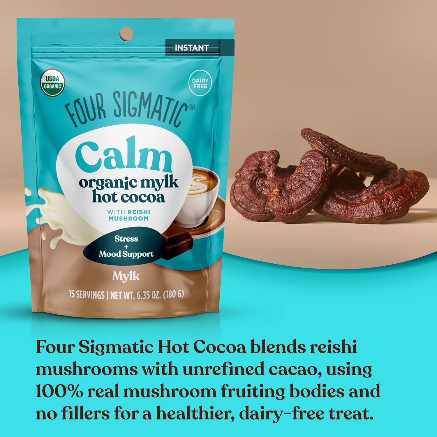 Four Sigmatic Calm Mushroom Cocoa Mix | Organic Mylk Hot Cocoa Mix With Reishi Mushroom | Vegan, Dairy Free | 15 Servings