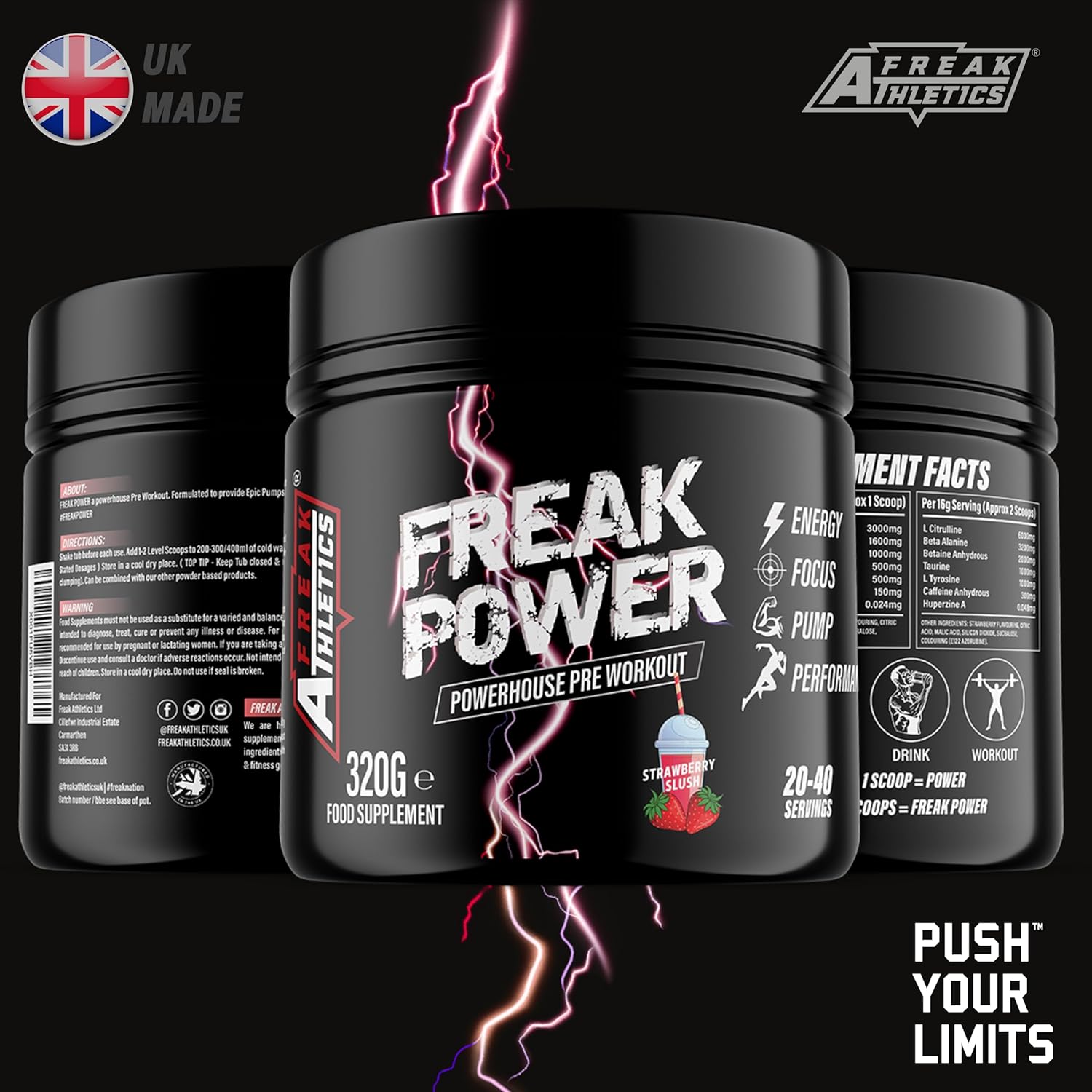 About this item ? ENERGY & PERFORMANCE - Experience a boost in energy and performance in daily activities and during physical workouts with Pre Workout Freak Power. Designed to be taken before your workout. ? OPTIMAL FORMULA - Using only the highest quality of Ingredients Freak Power combinesL Citruline, Beta Alanine, Betaine Anhydrous, L Taurine, L Tyrosine, Caffeine Anhydrous, L Theanine, Huperzine A. COMMITTED - Freak Athletics is committed to providing you with the purest and highest quality products possible. We are dedicated to helping you achieve your goals by making sure you have everything you need for a happier, healthier and stronger you! ? PREMIUM QUALITY - At Freak Athletics we are highly driven in providing you with the highest quality supplements available on the market. Using only the finest & high quality ingredients to create an advanced Pre Workout supplement with an optimal formula of ingredients. ? UK MADE - Pre Workout Freak Power has been Manufactured to the highest standards in the UK. safeguarded by the highest manufacturing and hygiene standards in the world. Our local manufacturing means you receive only the BEST! โบ See more product details,? ENERGY & PERFORMANCE - Experience a boost in energy and performance in daily activities and during physical workouts with Pre Workout Freak Power. Designed to be taken before your workout,? OPTIMAL FORMULA - Using only the highest quality of Ingredients Freak Power combinesL Citruline, Beta Alanine, Betaine Anhydrous, L Taurine, L Tyrosine, Caffeine Anhydrous, L Theanine, Huperzine A,COMMITTED - Freak Athletics is committed to providing you with the purest and highest quality products possible. We are dedicated to helping you achieve your goals by making sure you have everything you need for a happier, healthier and stronger you!,? PREMIUM QUALITY - At Freak Athletics we are highly driven in providing you with the highest quality supplements available on the market. Using only the finest & high quality ingredients to create an advanced Pre Workout supplement with an optimal formula of ingredients,? UK MADE - Pre Workout Freak Power has been Manufactured to the highest standards in the UK. safeguarded by the highest manufacturing and hygiene standards in the world. Our local manufacturing means you receive only the BEST!