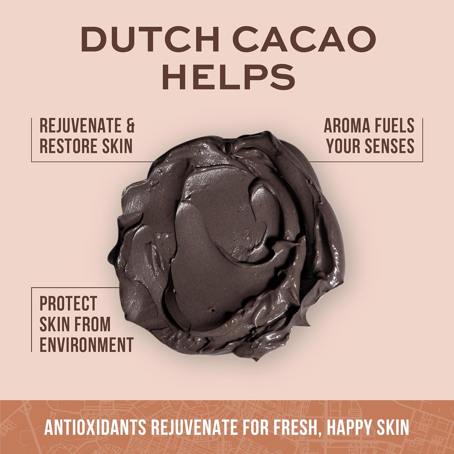 Rejuvenating face mask includes ingredients such as antioxidants to help revitalize and refresh your skin. Dutch Cacao offers a chocolate aroma to fuel your senses