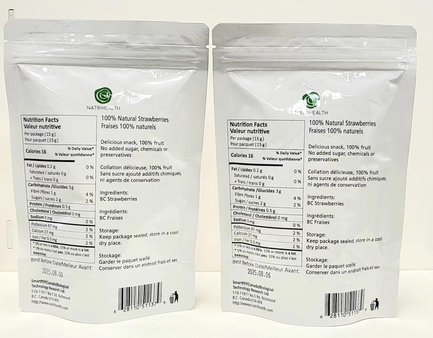 Freeze Dried Sliced Strawberries 2X15G - Delicious Snack, 100% Fruit, No Added Sugar - Grown In Canada (15G X 2 Bags)