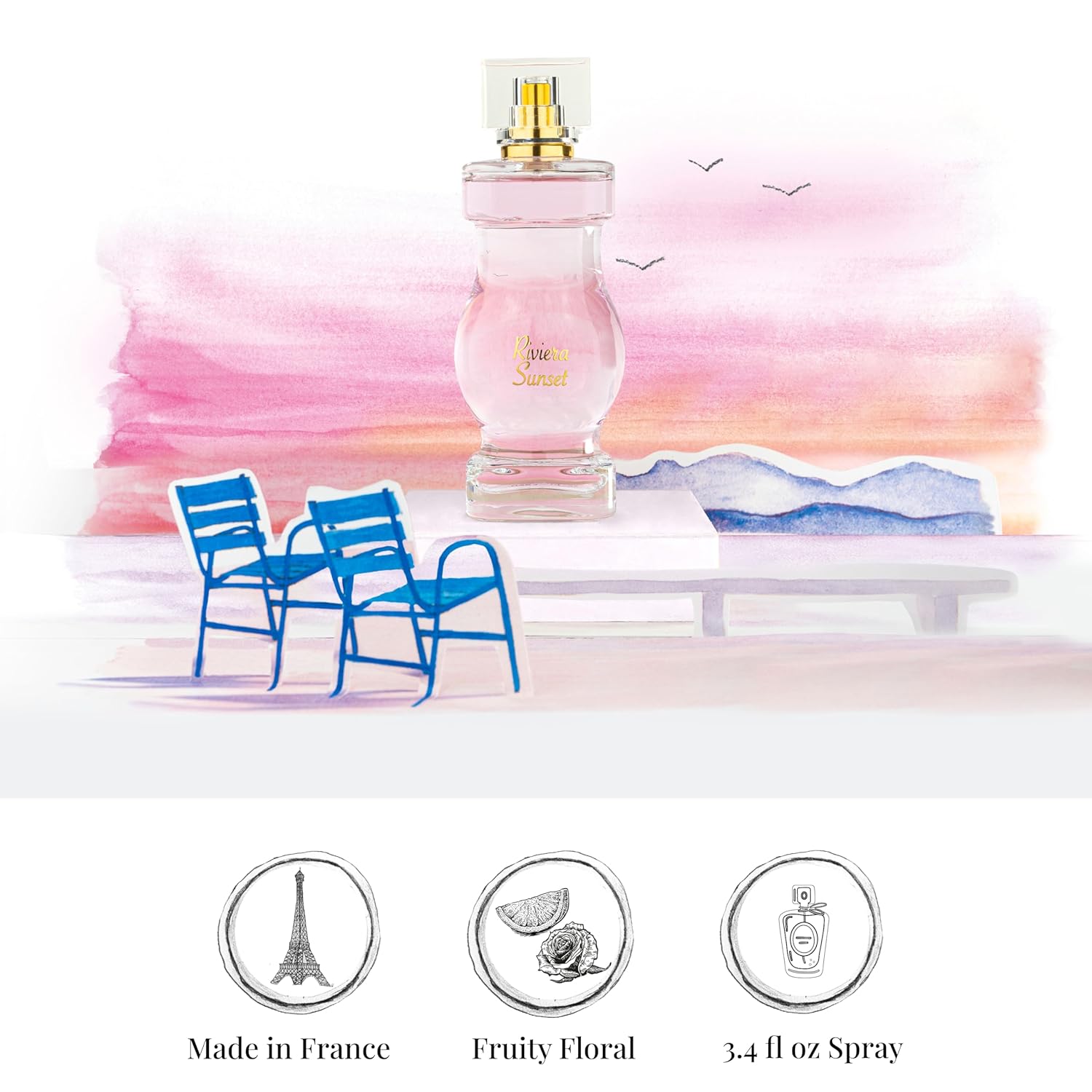 French Way Of Life, Collection Azur, Riviera Sunset Eau De Parfum, Spray Perfume For Women, Fruity Floral Scent - Notes Of Blackcurrant, Lemon, Pineapple, Made In France, 3.38 Fl.Oz
