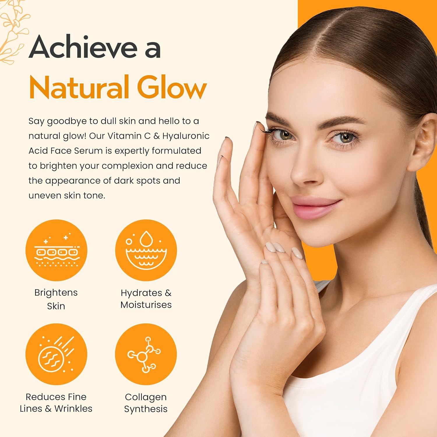 Our Vitamin C Face Serum with Hyaluronic Acid deeply penetrates and nourishes your skin, leaving it hydrated, plump, and revitalised