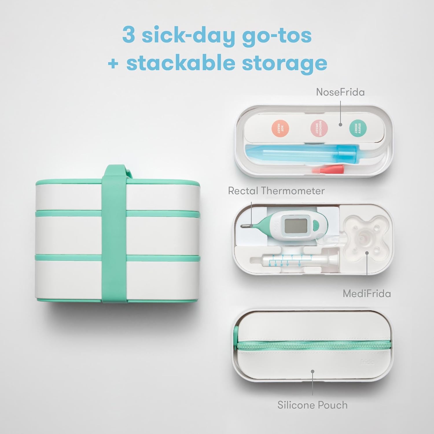 LOADED: Stocked with NoseFrida plus filters, MediFrida, Rectal Thermometer plus removable pouch