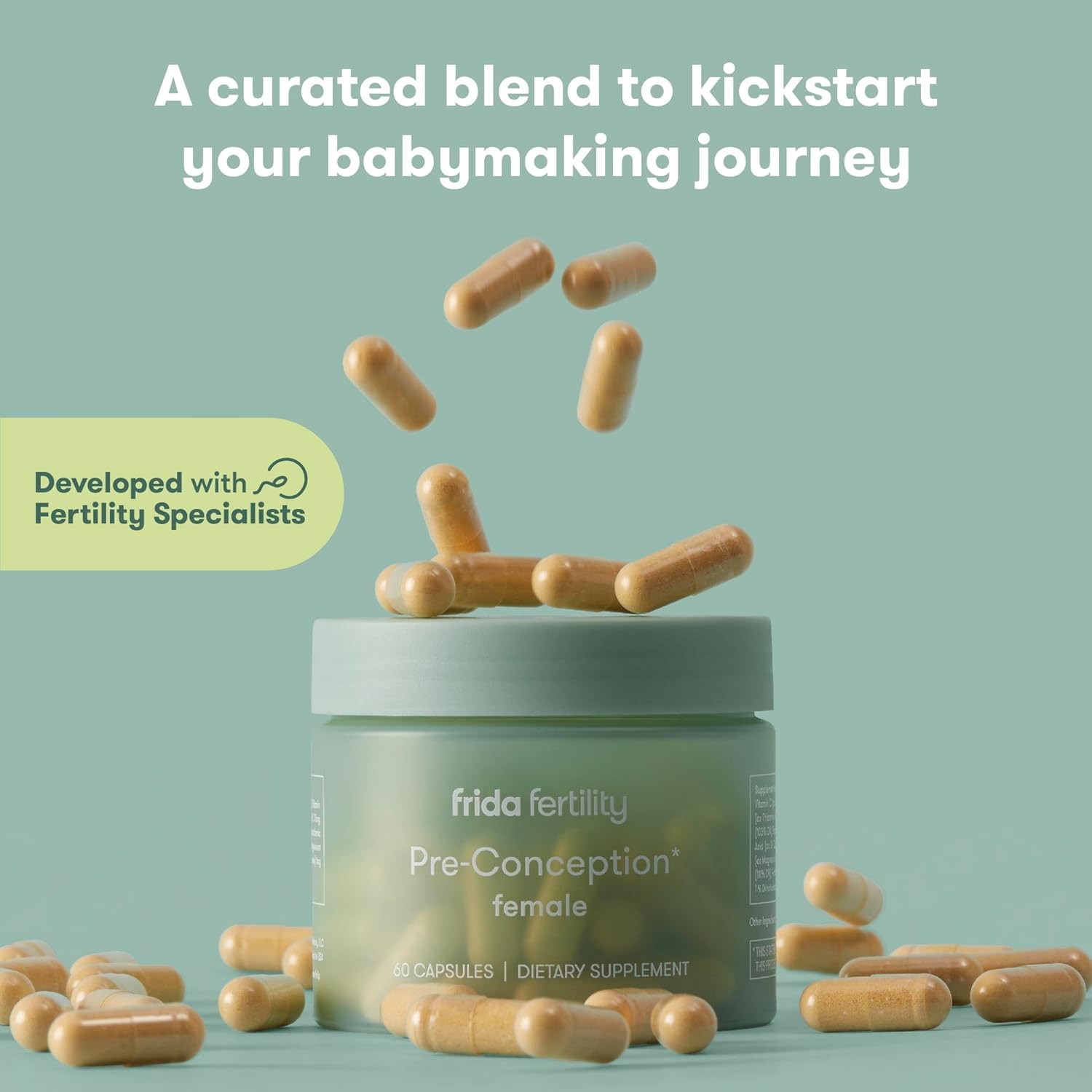 Frida Fertility Pre-Conception Fertility Supplement For Women | Daily Vitamins & Minerals, Folic Acid, Inositol, Coq10, Support Egg Function, Regular Menstrual Cycle | 60 Capsules, 30 Day Supply