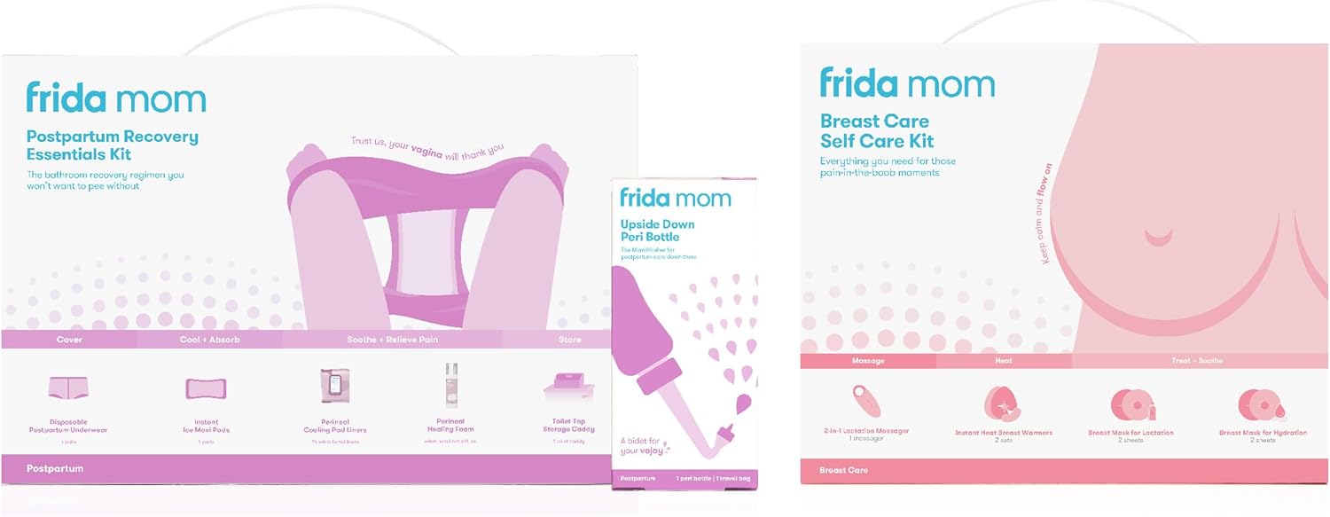 Frida Mom Essentials Kit + Gray Upside Down Peri Bottle + Breast Care Self Care Kit