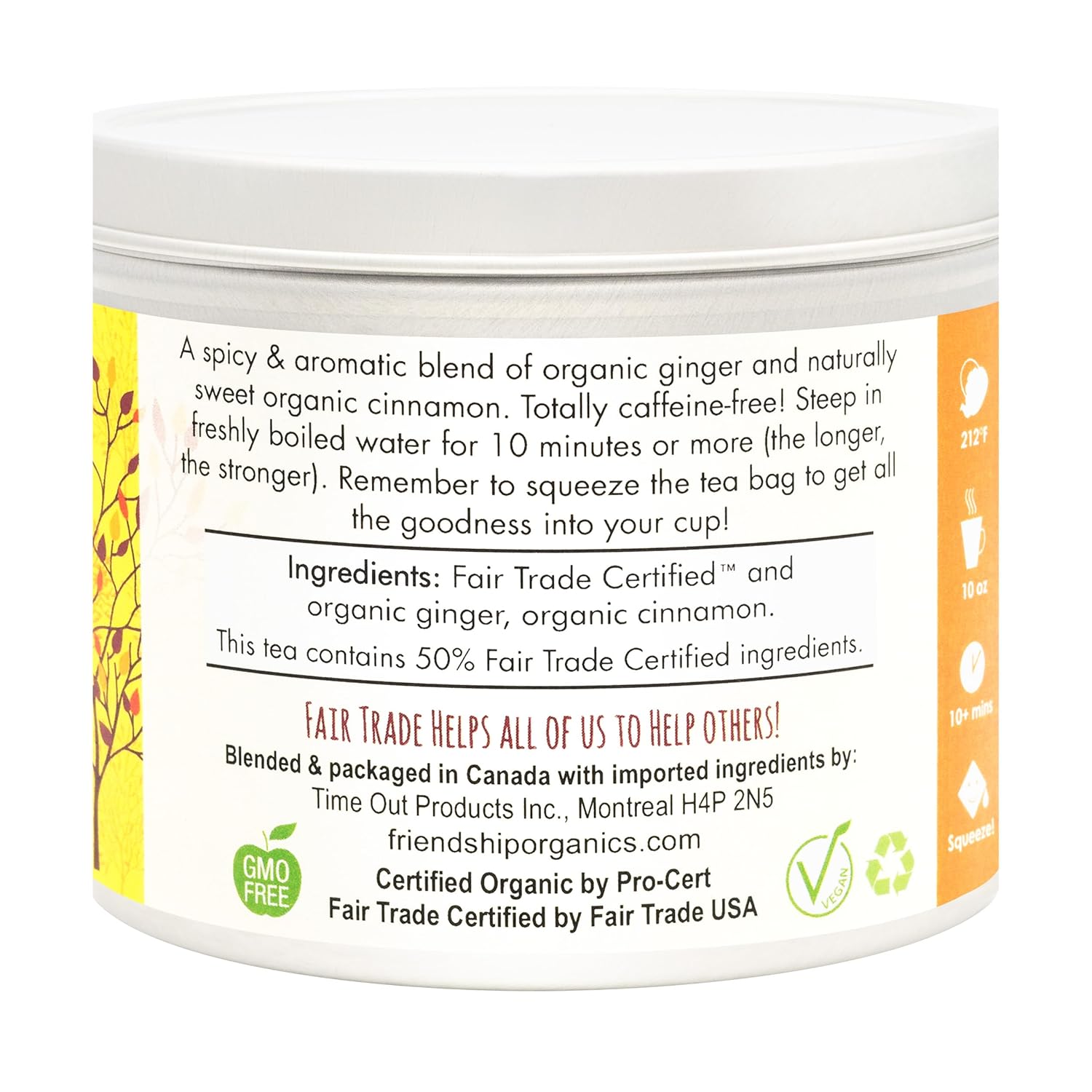 Friendship Organics Ginger Cinnamon Tea Bags, Organic Herbal And Fair Trade 22 Count