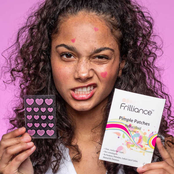 Hey... hands off! Your pimples that is. I know, I know, it’s hard to leave them alone but that’s where these hydrocolloid patches come in. As always, Frilliance acne-fighting products pamper your skin by leaving out harsh chemicals or drying ingredients. Brilliant! Zap your zits: Each packet includes 18 hydrocolloid patches in 2 sizes. These hydrocolloid patches are a direct application that attacks zits on contact. Aids healing while absorbing pimple gunk (oil and pus).EFFECTIVE INGREDIENTSHydrocolloid | helps skin heal from the inside outTea Tree Oil | antibacterial, anti-inflammatory, antiviral, and antifungalCalendula Oil | antifungal, anti-inflammatory, antibacterial, and antisepticCentenella Asiatica | antioxidant, amino acids, hydrating, and soothing