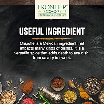Frontier Co-Op Ground Chipotle Is A Distinctive Spice That Comes From Dried, Smoked Jalapeno Peppers. Chipotle’S Smoky-Sweet Flavor Is Perfect For Enhancing, Balancing Or Adding A Kick To Any And All Southwestern And Mexican Dishes, Dating As Far Back As The Aztec Times. This Spice Is An Essential Ingredient For Every Condiment Rack. Chipotle Adds Depth And Delivers A Strong, Smoky, And Earthy Kick To Every Meal You Use It In. Our Farmers Cultivate And Process This Product In The United States. It Is Certified Organic And Kosher, And Is Dried And Smoked With Clean Techniques To Bring Out Its True Flavor Potential! Best Uses: Chicken Adobo, Chili, Mayonnaise, Nachos, Sauces, Soups, Quesadillas, Salad Dressings, Pizza, Sandwiches Features 1 Pound Bulk Bag (16 Ounces) Organic Certified, Kosher Certified, Non-Irradiated Smoky, Sweet Flavor Origin: United States Botanical Name: Capsicum Annuum