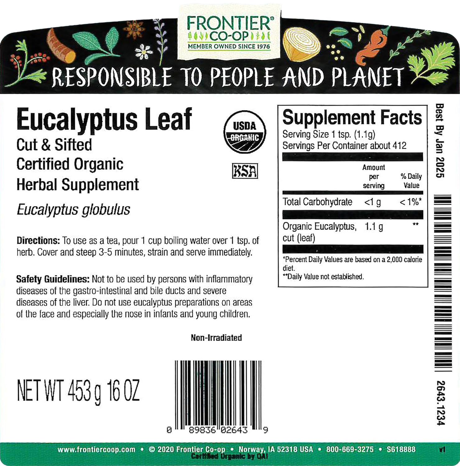 Frontier Eucalyptus Leaf Cut/Sifted Certified Organic, 16 Ounce Bag