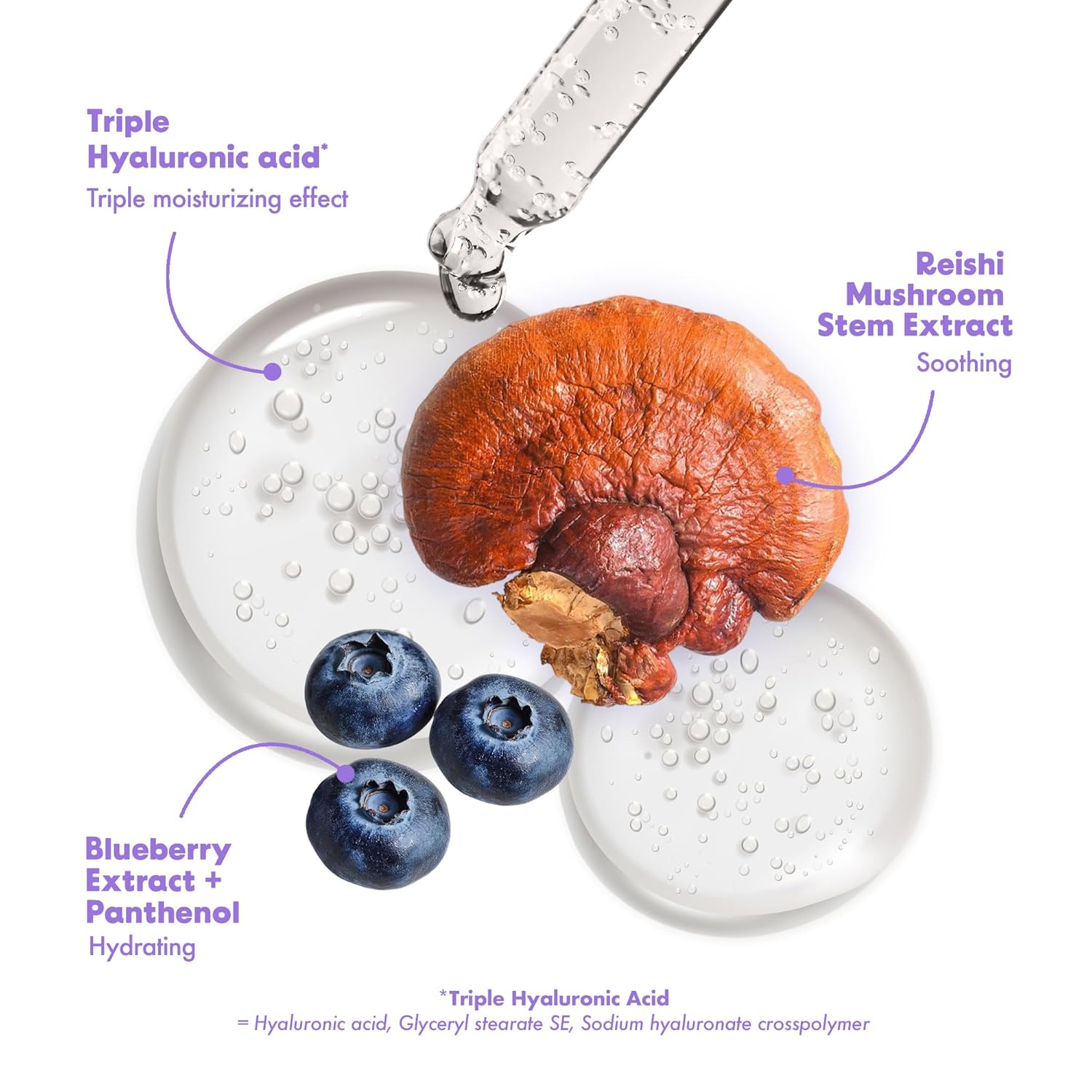 Powerful, Skin-Enhancing Ingredients: Packed with real blueberry extract, Panthenol, and triple hyaluronic acid, our facial sunscreen delivers deep hydration while soothing with Reishi mushroom stem extract
