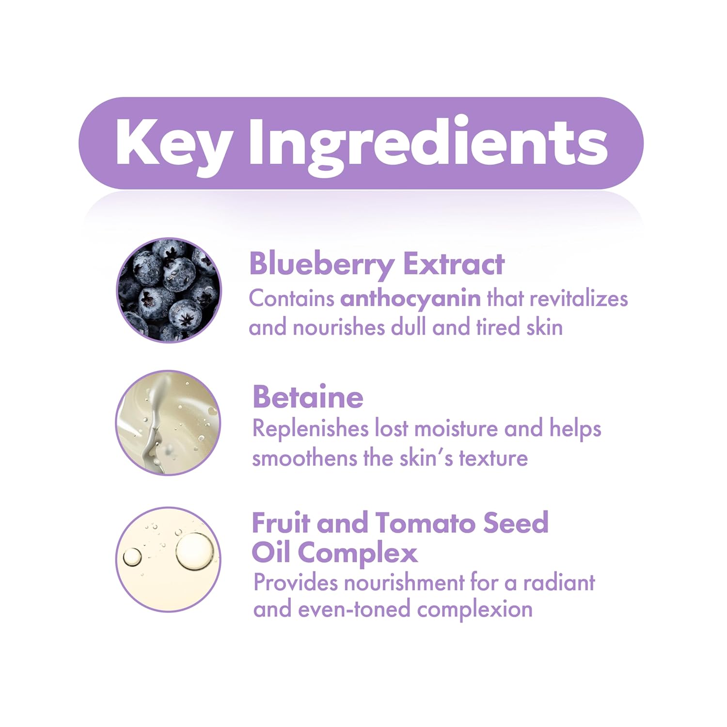 About this item Deep Hydration & Balance: Infused with 88% blueberry extract and betaine, this facial toner deeply moisturizes and maintains the balance of oil and moisture in skin that’s prone to dehydration. Revitalizing & Soothing: The anthocyanins from blueberry help soothe and revitalize fatigued skin, calming irritation caused by environmental stressors for a refreshed, healthy appearance. Gentle & Nourishing Formula: Enriched with vegan panthenol and WS BS Care EX, this toner deeply nourishes and strengthens the skin's moisture barrier, ensuring a calm, balanced complexion without irritation. Lightweight & Non-Sticky: A light, watery formula that absorbs quickly, leaving your skin feeling hydrated without any stickiness, and a subtle, refreshing blueberry scent. R VITA WDS Technology: Powered by R VITA WDS, we use a 48-hour cold extraction method to maximize the potency of the pomegranate extract, ensuring deep hydration, refined skin texture, and enhanced nutrient absorption. See more product details,Deep Hydration & Balance: Infused with 88% blueberry extract and betaine, this facial toner deeply moisturizes and maintains the balance of oil and moisture in skin that’s prone to dehydration,Revitalizing & Soothing: The anthocyanins from blueberry help soothe and revitalize fatigued skin, calming irritation caused by environmental stressors for a refreshed, healthy appearance,Gentle & Nourishing Formula: Enriched with vegan panthenol and WS BS Care EX, this toner deeply nourishes and strengthens the skin's moisture barrier, ensuring a calm, balanced complexion without irritation,Lightweight & Non-Sticky: A light, watery formula that absorbs quickly, leaving your skin feeling hydrated without any stickiness, and a subtle, refreshing blueberry scent,R VITA WDS Technology: Powered by R VITA WDS, we use a 48-hour cold extraction method to maximize the potency of the pomegranate extract, ensuring deep hydration, refined skin texture, and enhanced nutrient absorption