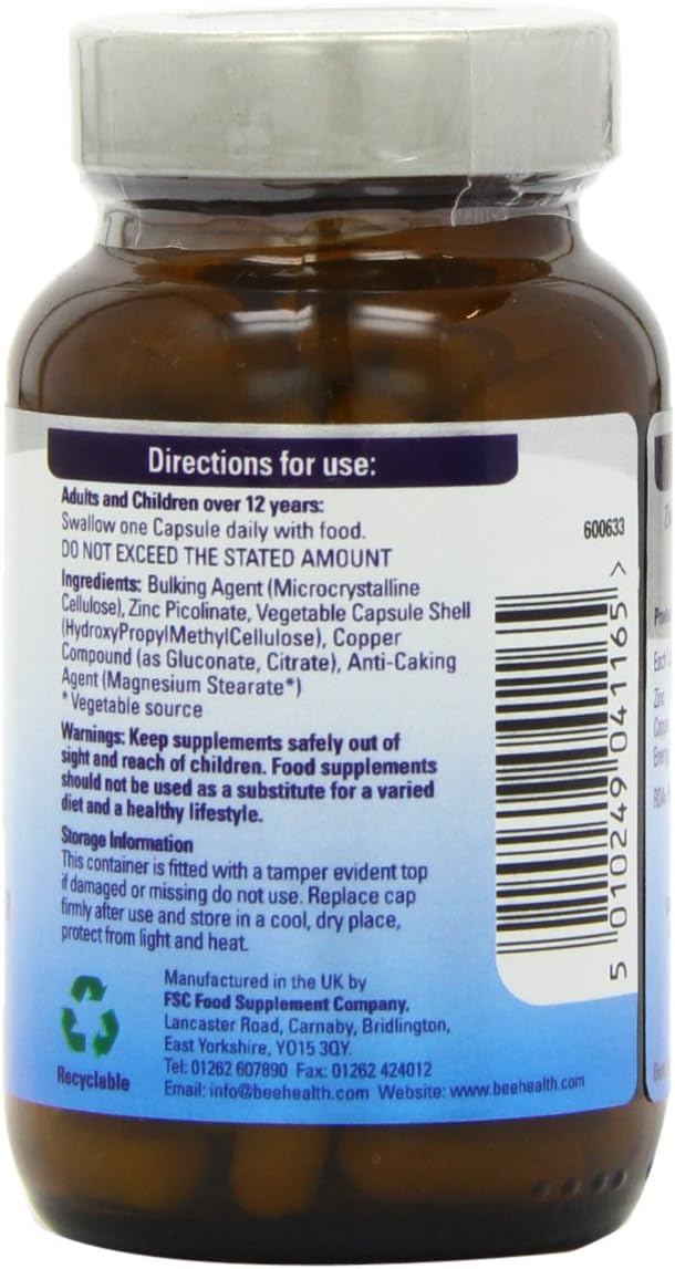DESCRIPTION : Product Description Zinc is an essential component of many enzymes. It plays an important role in the metabolism of proteins, carbohydrates, lipids and nucleic acids and cell membrane structure. Zinc can compete with copper for absorption, so supplemental copper is added. Copper also aids the absorption and utilisation of zinc. No artificial flavours or preservatives, no added salt or colours, gluten free, wheat free, yeast free, dairy free, soya free and corn free. Suitable for vegetarians and vegans. Indications Immune Support, The Common Cold, Sore Throat, Bone Health Ingredients Bulking agent: powdered cellulose; zinc picolinate, vegetable capsule shell (hydroxypropylmethyl cellulose), copper compound (citrate, gluconate), anti-caking agent: magnesium stearate (vegetable source). Directions One tablet per day with a meal. Safety Warning Zinc may interact with some forms of medication. Box Contains 1 x Food Supplement 30 mg Zinc Picolinate and Copper 90 Tablets