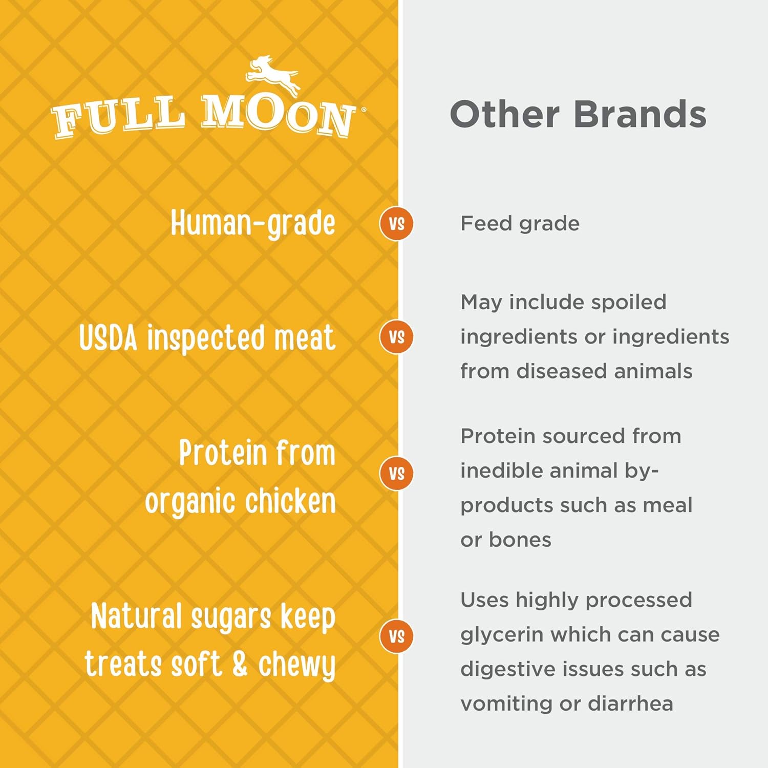 U.S.-Grown Chicken: Full Moon Treats Are Proudly Made In The United States Using Regionally Sourced Ingredients, Including Usda Approved, Antibiotic-Free Chicken