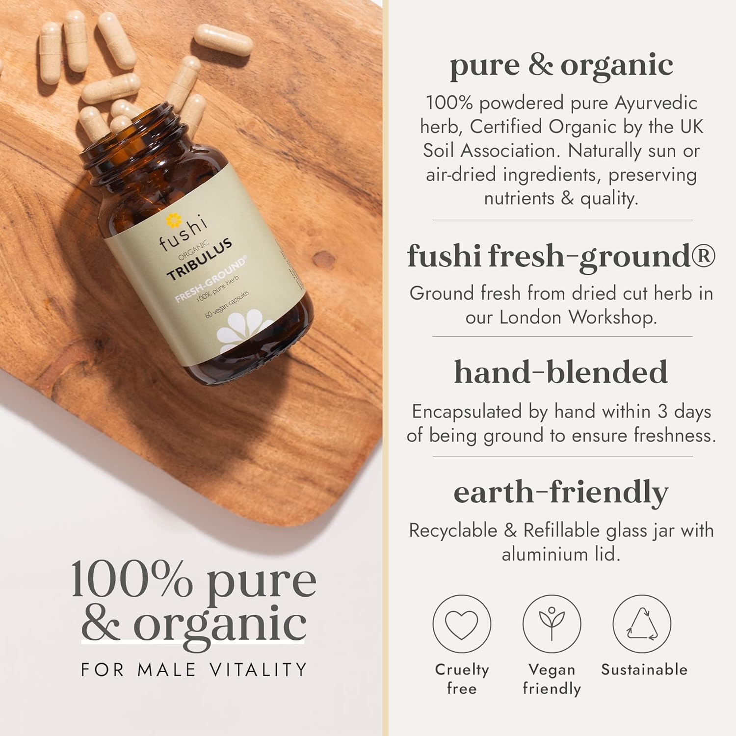 Fushi Organic Tribulus Terrestris (Gokshura), 60 Caps | Fresh-Ground Whole Food | Ayurvedic Herb For Male Health & Sports Performance | Ethical & Vegan | Manufactured In The Uk