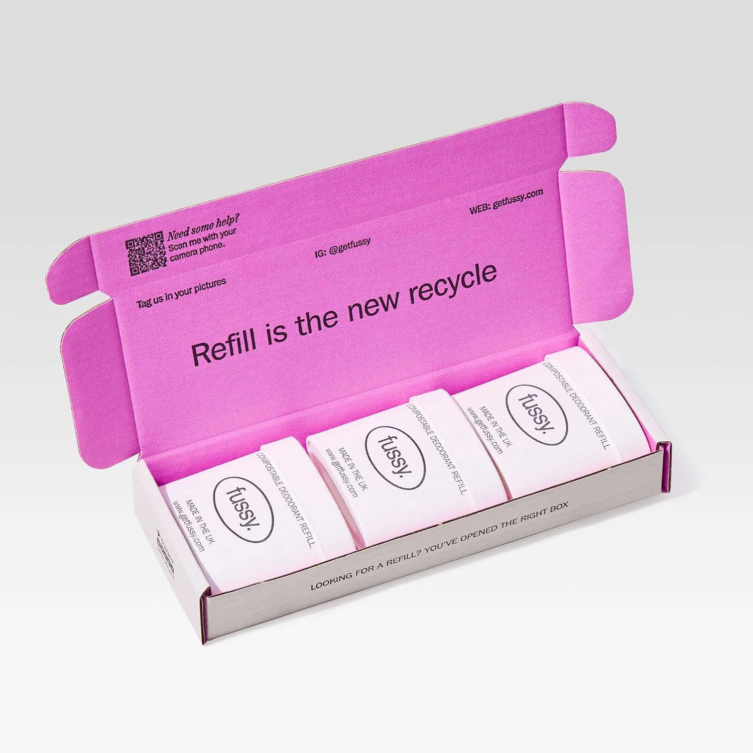 Fussy - Natural Deodorant Refill - Aluminium Free - Mint Scent - 24 Hour Protection - 100% Effective - Wavy Days - Peppermint, Eucalyptus & Sage - Vegan & Cruelty Free