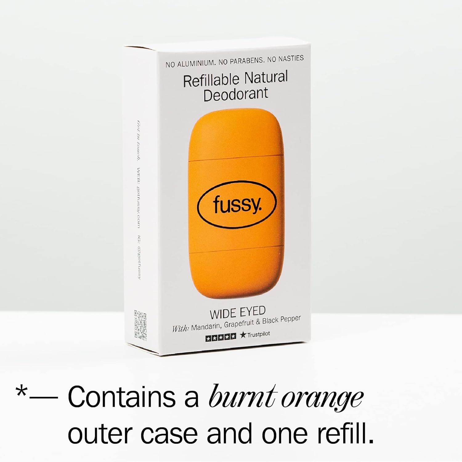 Fussy - Natural Refillable Deodorant - Aluminium Free - 24 Hour Protection - Citrus Scent & Burnt Orange Case - Mandarin, Grapefruit & Pepper - Vegan & Cruelty Free - 100% Natural & Effective