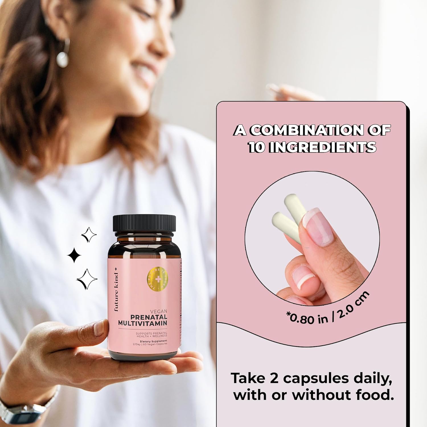 Future Kind Vegan Prenatal Vitamin - (60Ct) Prenatal Vitamins With Dha & L-Methylfolate In Glass Bottle - Prenatal Folate Supplement For Women With Vitamin D & E, Iron, Biotin, Gluten-Free & Non-Gmo