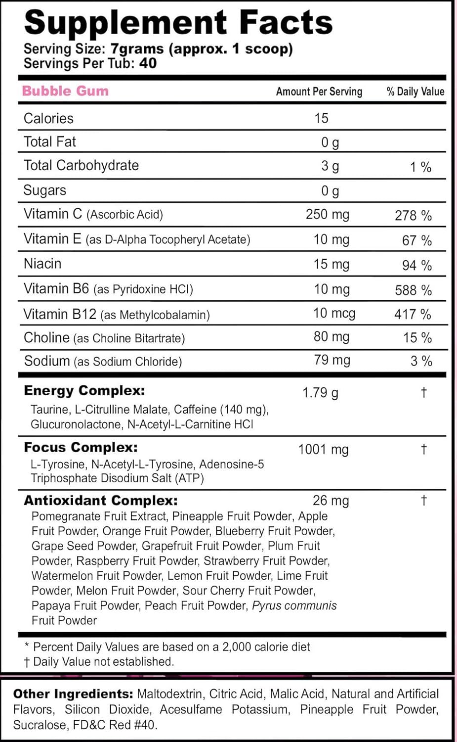 DESCRIPTION : G fuel Bubble Gum Energy Powder, Sugar Free, Clean Caffeine Focus Supplement, Water Mix, Focus Amino, Vitamin + Antioxidants Blend, 9.8 oz (40 Servings)