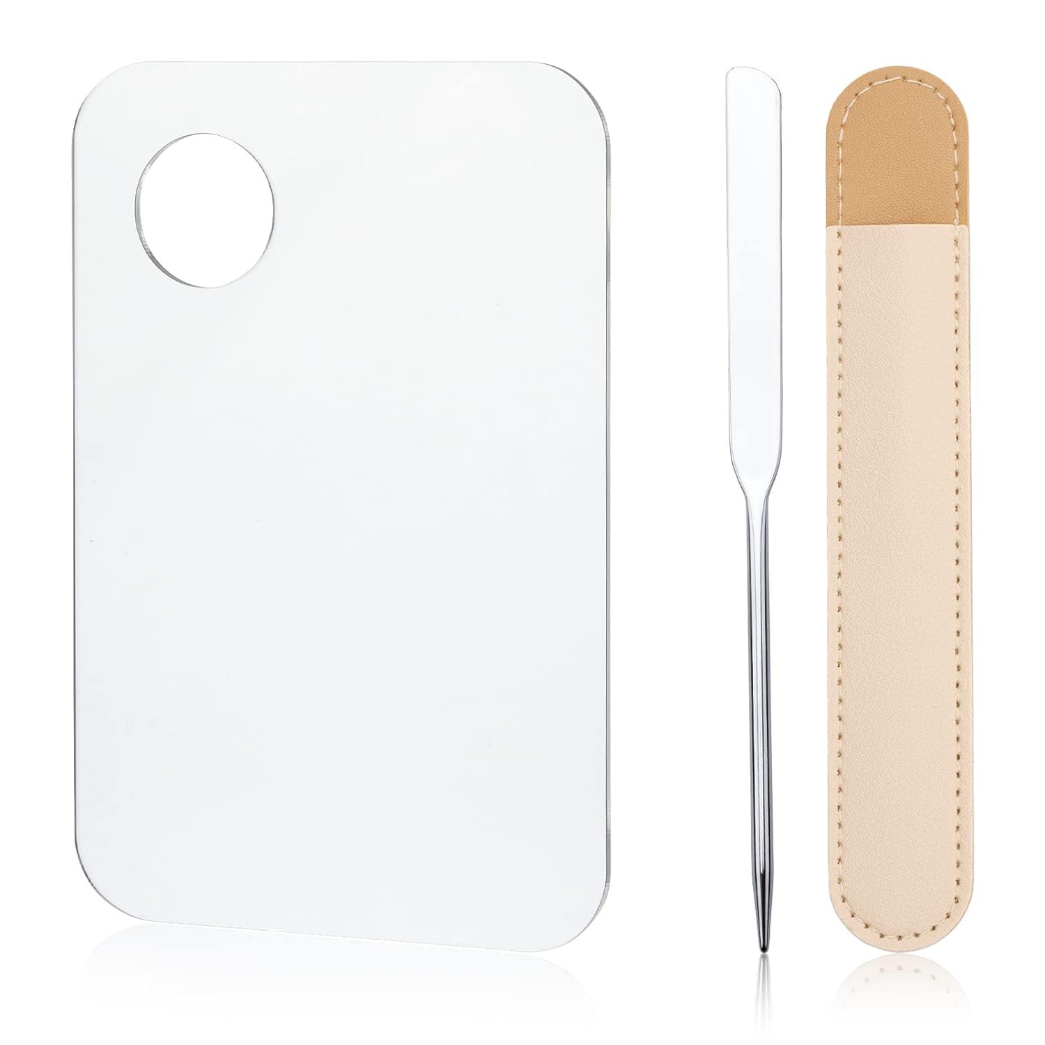 ABOUT THE PRODUCT: 1 > High Quality: The acrylic cosmetic palette set is made of high-quality acrylic, sturdy and lightweight, making it easy to carry around. The makeup mixing palette has a round finger hole for easy grip and no damage to your hands 2 > Package Included: Makeup tray size: 5.9 "x3.9"/15cmx10cm (length x width); the length of the spatula is 6.3x0.39x0.16in/16.1x1x0.4cm, and the storage case is 6.9x1.1in/17.5x2.9cm. You will get 1pcs acrylic makeup mixing tray and 1pcs picasso spatula with holster 3 > Stainless Steel Korean Foundation Spatula: The sloping garden design makeup scraper will not scratch the skin, providing you with fast and effective makeup. Made of high-quality stainless steel, durable and easy to clean, suitable for long-term useG2PLUS Acrylic Cosmetic Makeup Palette with Stainless Spatula, Korean Spatula Makeup Foundation Palette for Eye Shadow, Eyelash, Nail Art and Concealer