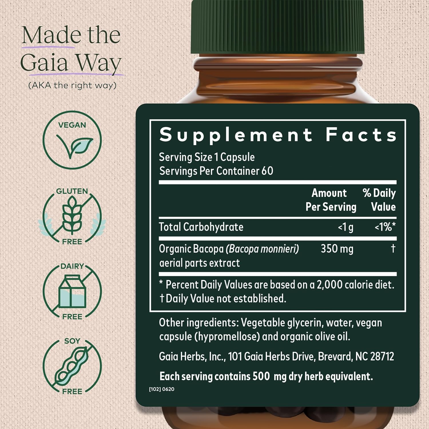 Gaia Herbs Bacopa - Brain And Cognitive Support Herbal Supplement - Made With Bacopa (Bacopa Monnieri) To Help Support A Thriving Mind - 60 Vegan Liquid Phyto-Capsules (Up To 60-Day Supply)