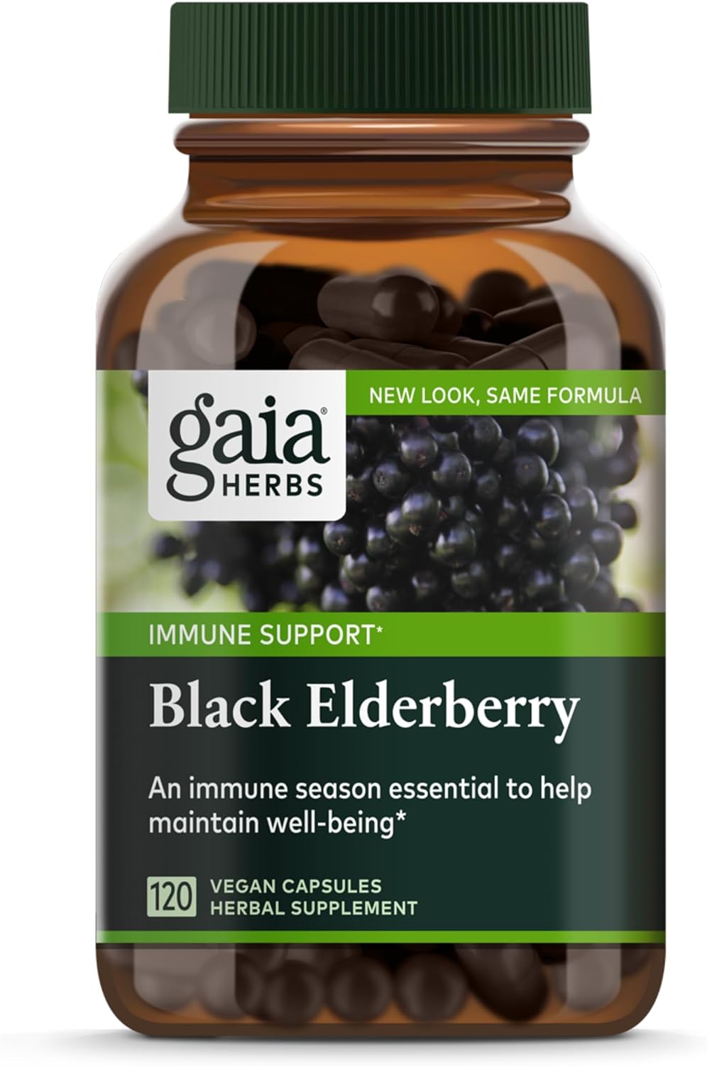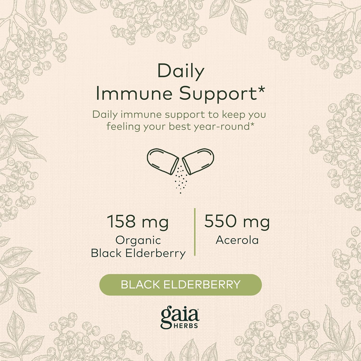 Gaia Herbs Black Elderberry - Daily Immune Support Supplement To Help Maintain Well-Being- With Black Elderberries And Acerola Fruit For Antioxidant Support - 120 Vegan Capsules (60-Day Supply)