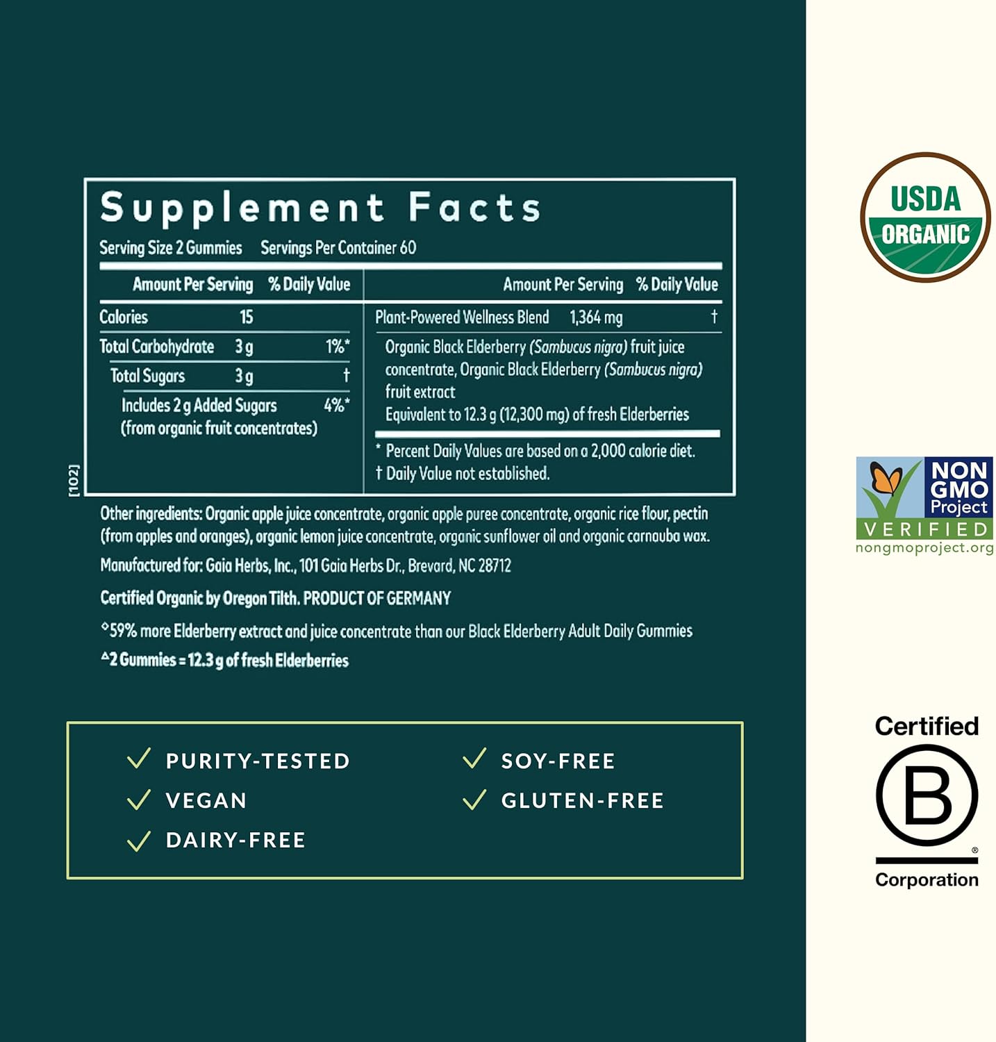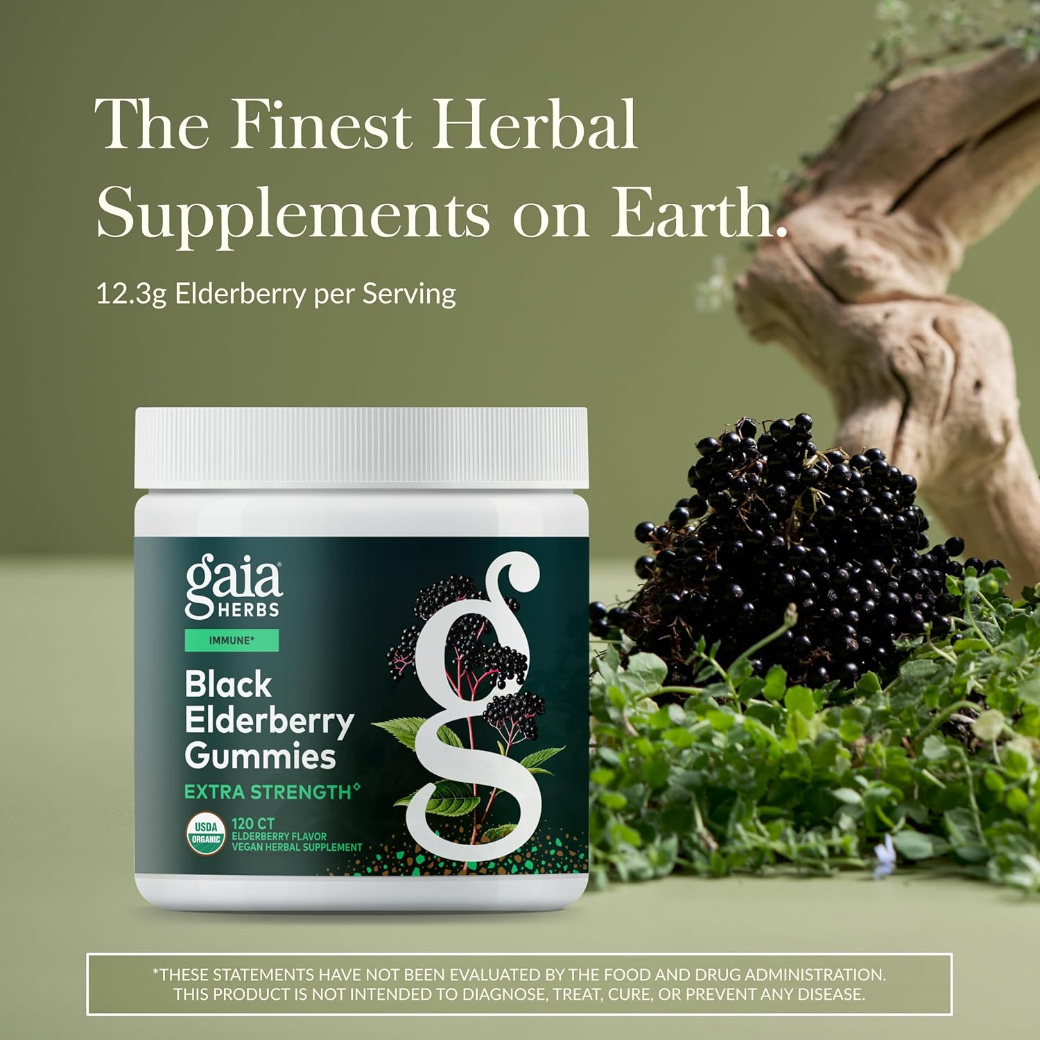 Gaia Herbs Black Elderberry (Sambucus Nigra) Extra Strength Gummies - Delicious Immune Support Supplement - Made With Certified Organic Black Elderberries For Immune System Support - 120 Gummies