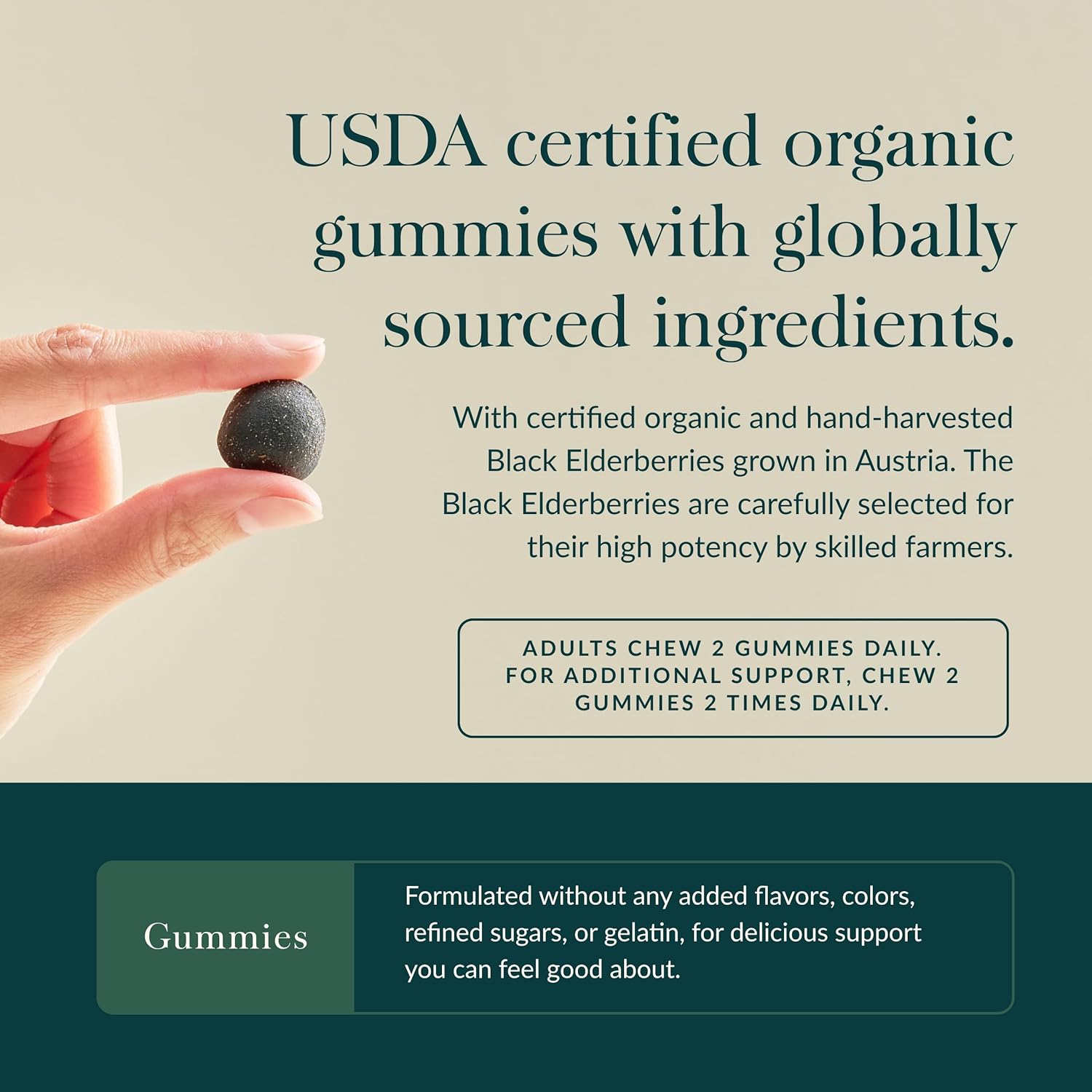 About this item Elderberry (Sambucus Nigra) Immune Support: Delicious daily gummies to support your immune health* Powerful Elderberry Formula: Each serving has the equivalent of 7.5g of fresh elderberries An Antioxidant Support: Black Elderberry (Sambucus Nigra) has often been used to maintain the body’s natural defenses Purity-Tested: Our organic, vegan gummies have no refined sugars, added colors, or flavors Our Story: Since 1987, our purpose has been to connect people, plants, and planet to create healing See more product details,Elderberry (Sambucus Nigra) Immune Support: Delicious daily gummies to support your immune health,Powerful Elderberry Formula: Each serving has the equivalent of 7.5g of fresh elderberries,An Antioxidant Support: Black Elderberry (Sambucus Nigra) has often been used to maintain the body’s natural defenses,Purity-Tested: Our organic, vegan gummies have no refined sugars, added colors, or flavors,Our Story: Since 1987, our purpose has been to connect people, plants, and planet to create healing