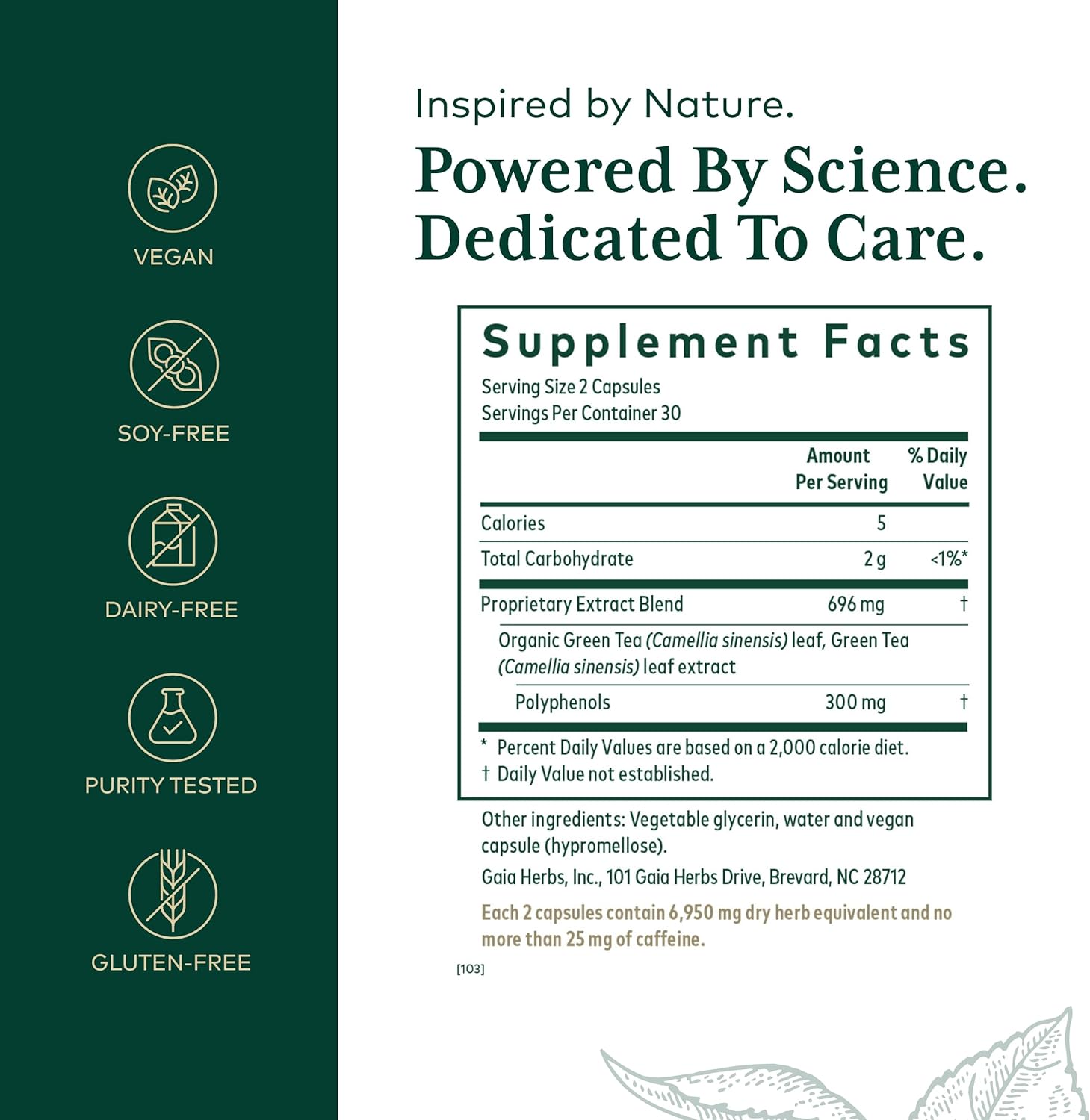 Gaia Herbs Pro Green Tea - Green Tea Herbal Supplement For Heart Health - With Organic Green Tea Leaf And Extract - 60 Vegan Liquid Phyto-Capsules (30 Servings)
