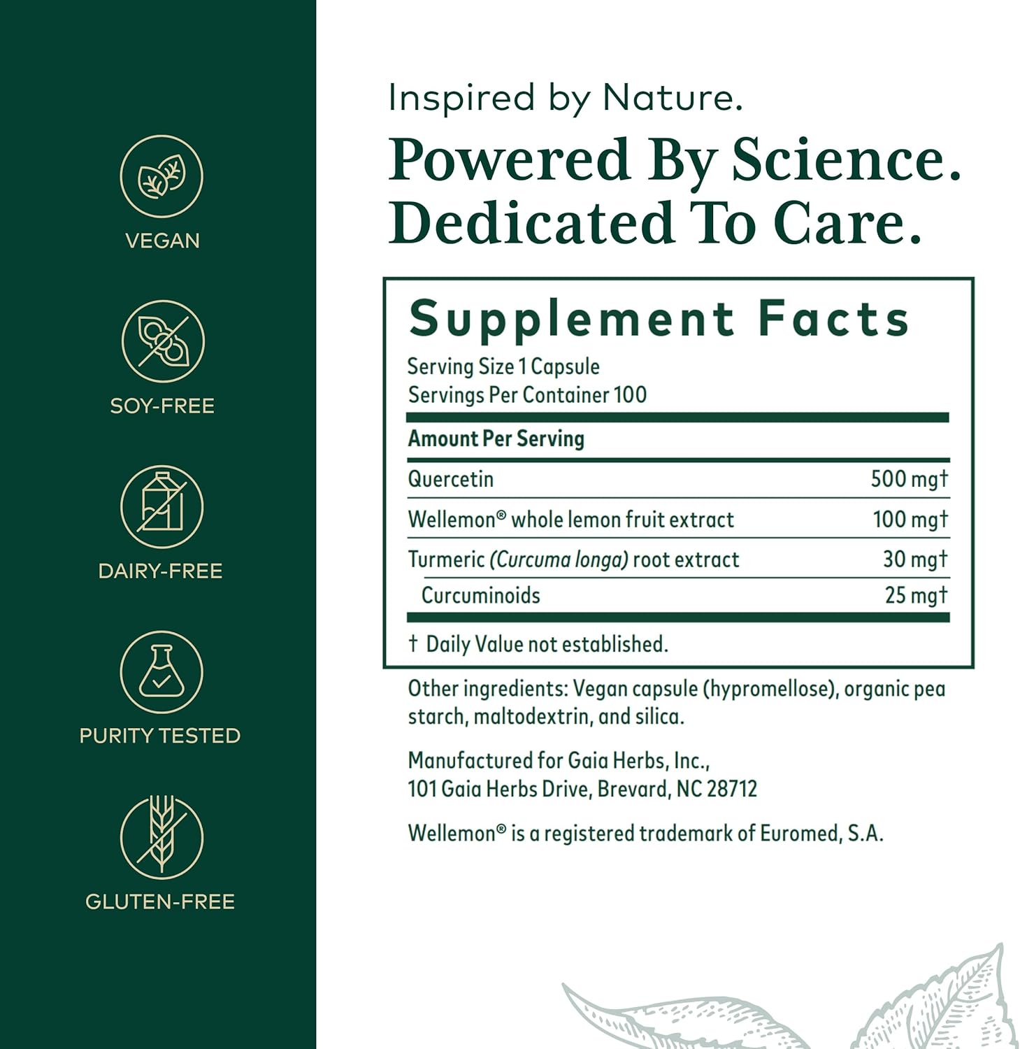 Gaia Herbs Pro Quercetin Synergy 500 - Immune System Support Supplement* - Cell Health Supplement* With Quercetin Bromelain & Turmeric - 100 Tablets (100 Servings)