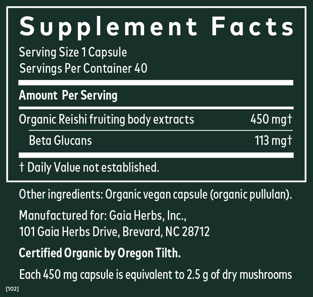 Gaia Herbs Reishi Mushroom - Helps Maintain A Healthy Immune System & Supports Heart Health - Adaptogen Herbal Supplement For Longevity Support - 40 Vegan Liquid Phyto-Capsules (40-Day Supply)