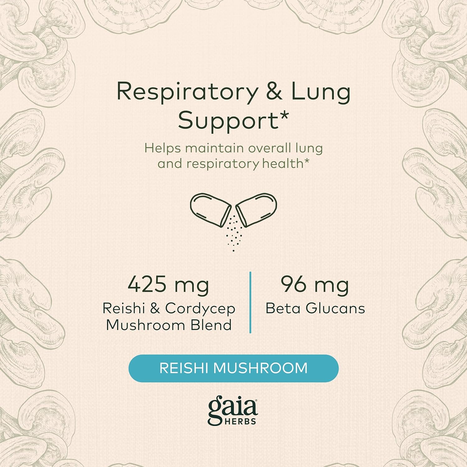 Gaia Herbs Respiratory Mushroom Blend - Immune Support Herbal Supplement To Help Maintain Overall Lung And Respiratory Health - With Reishi And Cordyceps* Mushrooms - 40 Vegan Capsules (40-Day Supply)