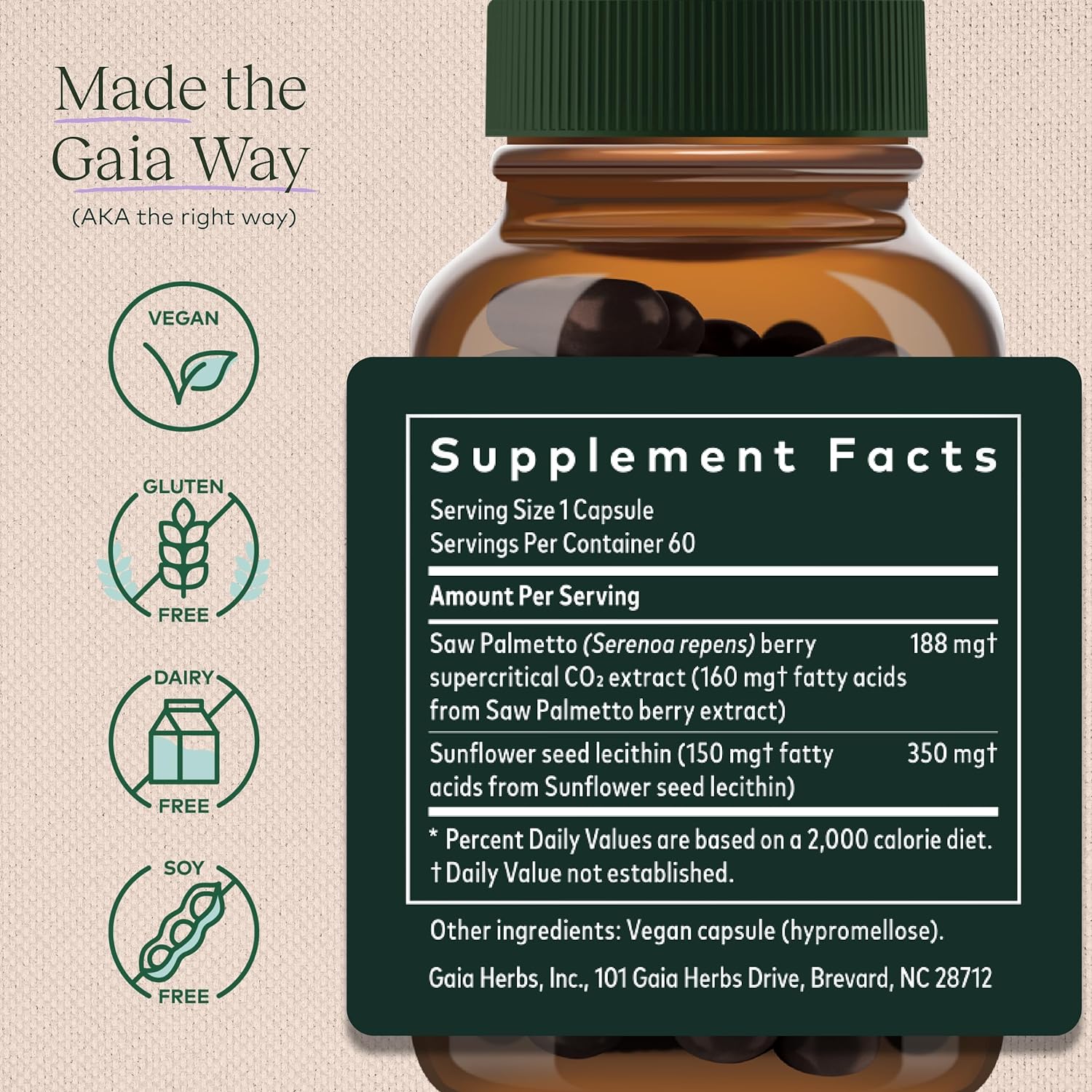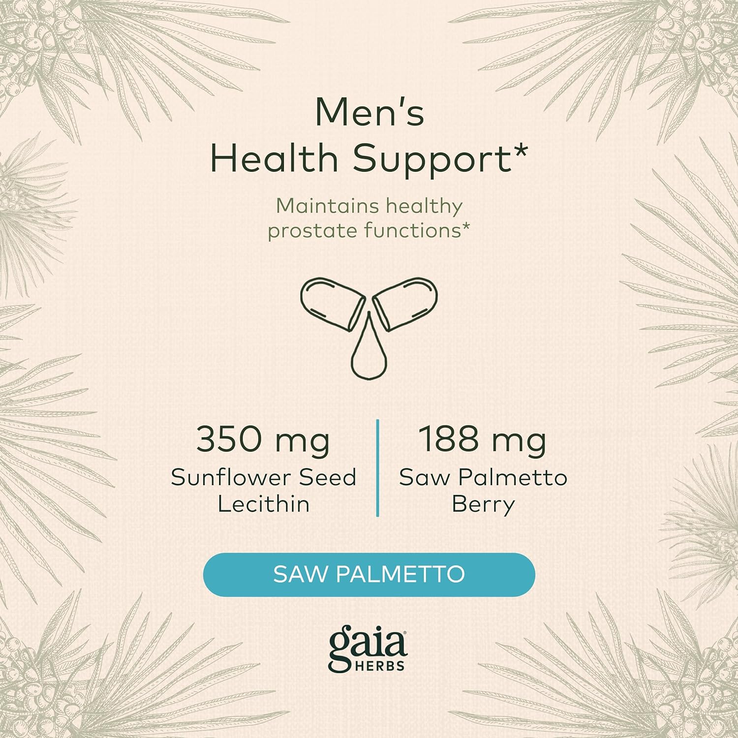 Gaia Herbs Saw Palmetto - Supports Healthy Prostate Function For Men - Contains Saw Palmetto And Sunflower Seed Lecithin To Support Men’S Health - 60 Vegan Liquid Phyto-Capsules (30-Day Supply)