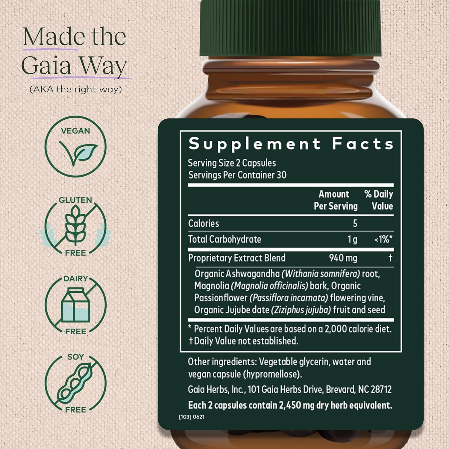 Gaia Herbs Sleepthru - Natural Sleep Support Supplement With Organic Ashwagandha Root, Organic Magnolia Bark, Passionflower, And Jujube Date - 60 Vegan Liquid Phyto-Capsules (30-Day Supply)