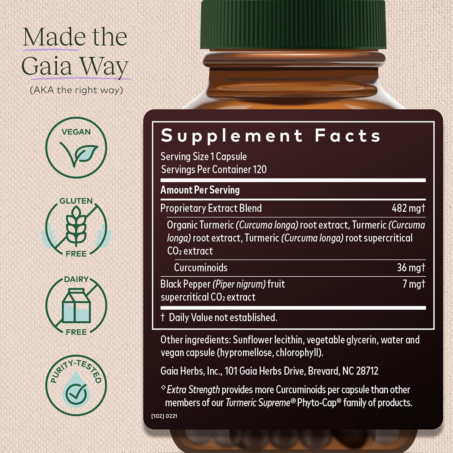 Gaia Herbs Turmeric Supreme Extra Strength - Helps Reduce Occasional Swelling From Normal Wear & Tear - With Turmeric Curcumin & Black Pepper-120 Vegan Liquid Phyto-Capsules(Up To 120-Day Supply)