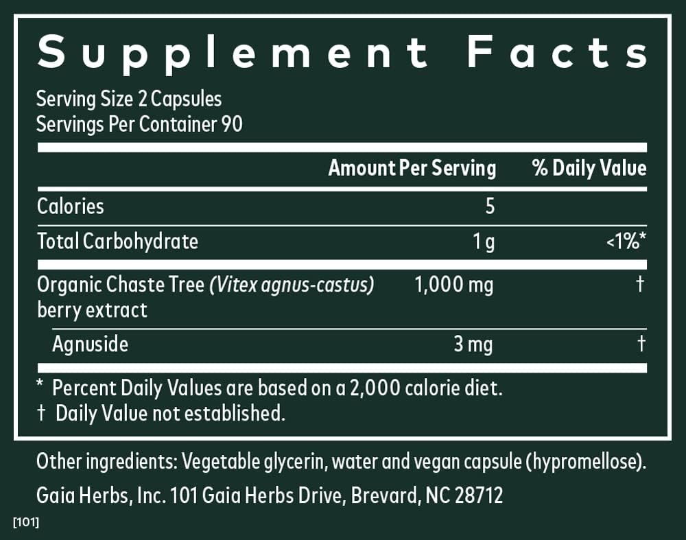 Gaia Herbs Vitex Berry (Chaste Tree) - Supports Hormone Balance & Fertility For Women - Helps Maintain Healthy Progesterone Levels To Support Menstrual Cycle Health - 180 Vegan Caps (90-Day Supply)