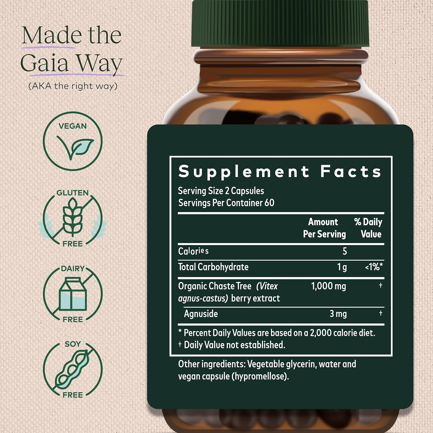 Gaia Herbs, Vitex Berry Vegan Liquid Phyto Capsules - Pms Support Supplement, Chaste Tree Berry, Hormone Balance For Women, 120-Count (Pack Of 1)