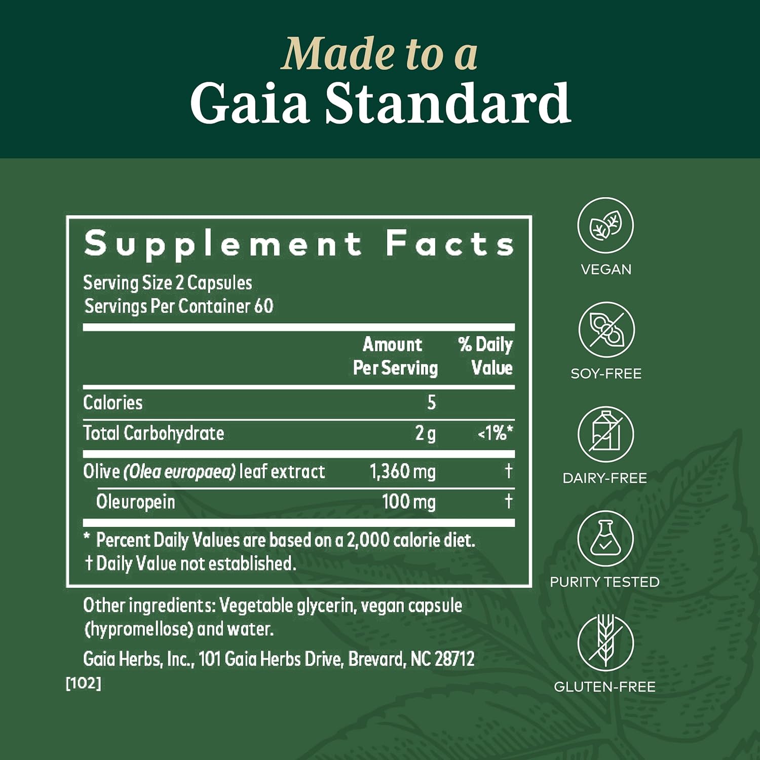 Thanks To Its Antioxidant Properties, Olive Leaf Is Traditionally Used To Help Maintain The Body’S Natural Immune Defenses And Promote Cardiovascular Health.* At Gaia Herbs, We Use Gentle, Natural Processes To Extract Our Olive Leaf Into A Concentrated Liquid, Preserving Its Primary Active Constituent Oleuropein. With 1,360 Mg Of Olive Leaf Per Serving, The Formula Delivers 100 Mg Of This Beneficial Compound