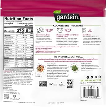 Contains one 12.3-ounce bag of Gardein Lightly Breaded Turk'y Cutlets10Gardein Lightly Breaded Turk'y Cutlets are crispy, tender vegan cutlets that make for a homestyle classic10Served with a generous portion of delicious gravy, this meatless turk'y option is ready in just 8 minutes10With 19 grams of protein per serving, this Gardein frozen entrƩe makes a delicious dish to enjoy whenever you want your favorite foods meat free10This frozen plant-based turk'y is dairy free, certified vegan and Non-GMO Project Verified10Gardein Lightly Breaded Turk'y Cutlets are crispy on the outside, tender on the inside and covered with homestyle gravy. With 19 grams of protein per serving, this satisfying homestyle classic is a dinner winner. In 8 minutes, this Gardein frozen turk'y makes a delicious flexitarian option any day of the week