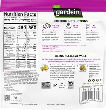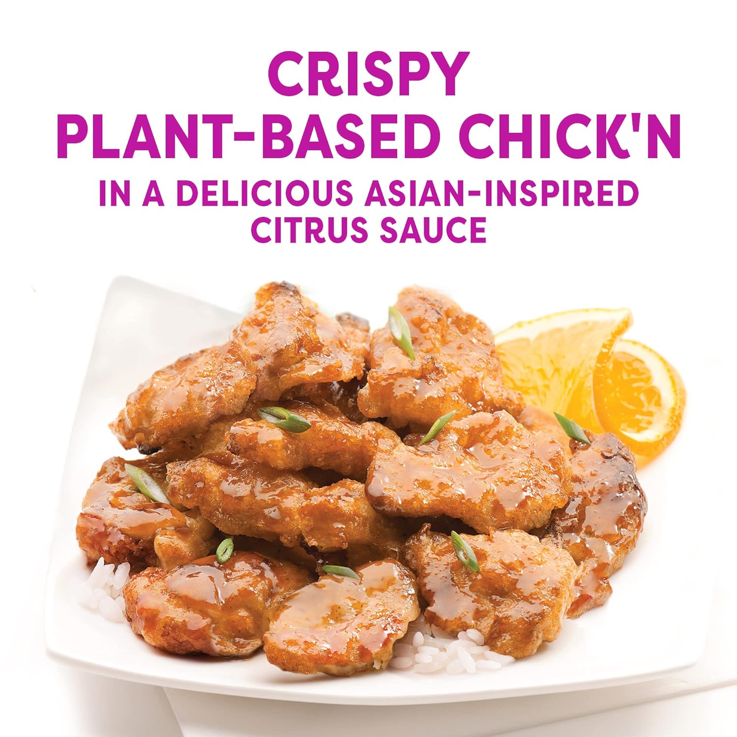 Contains one 10.5-ounce bag of Gardein Mandarin Orange Crispy Plant-Based Chick'n10Golden tempura vegan plant-based chick'n with a savory Asian-inspired citrus sauce10Sauté and enjoy a tasty meatless entrée with fresh vegetables over rice10Makes a delicious dish to enjoy whenever you want your favorite foods meat free10This frozen plant-based chick'n is dairy free, certified vegan and Non-GMO Project Verified10Gardein Mandarin Orange Crispy plant-based chick'n comes with golden tempura vegan plant-based chick'n and a savory Asian-inspired citrus sauce. Sauté the nuggets and enjoy a tasty meatless entrée in minutes. Indulge in the vegetarian plant-based chick'n on its own, or add fresh vegetables and serve it over rice. This Gardein frozen Mandarin Orange Crispy Chick'n makes a delicious flexitarian option any day of the week
